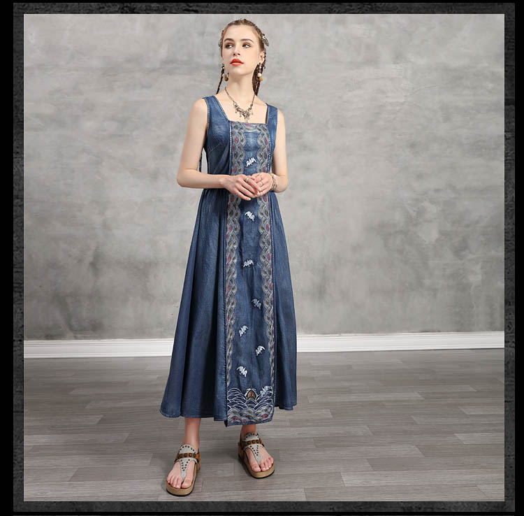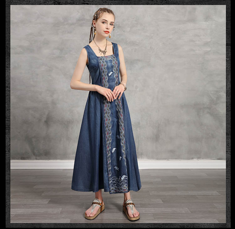 ARTKA JOZZIE KEER SQUARE COLLAR DENIM JEAN MAXI SUMMER DRESS