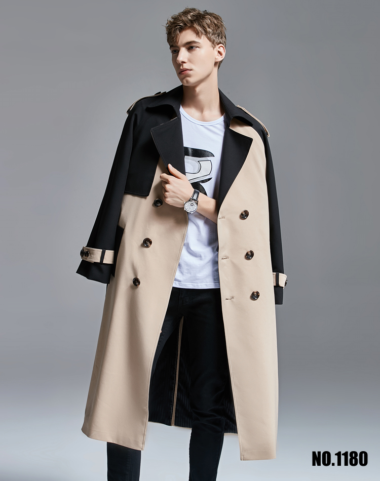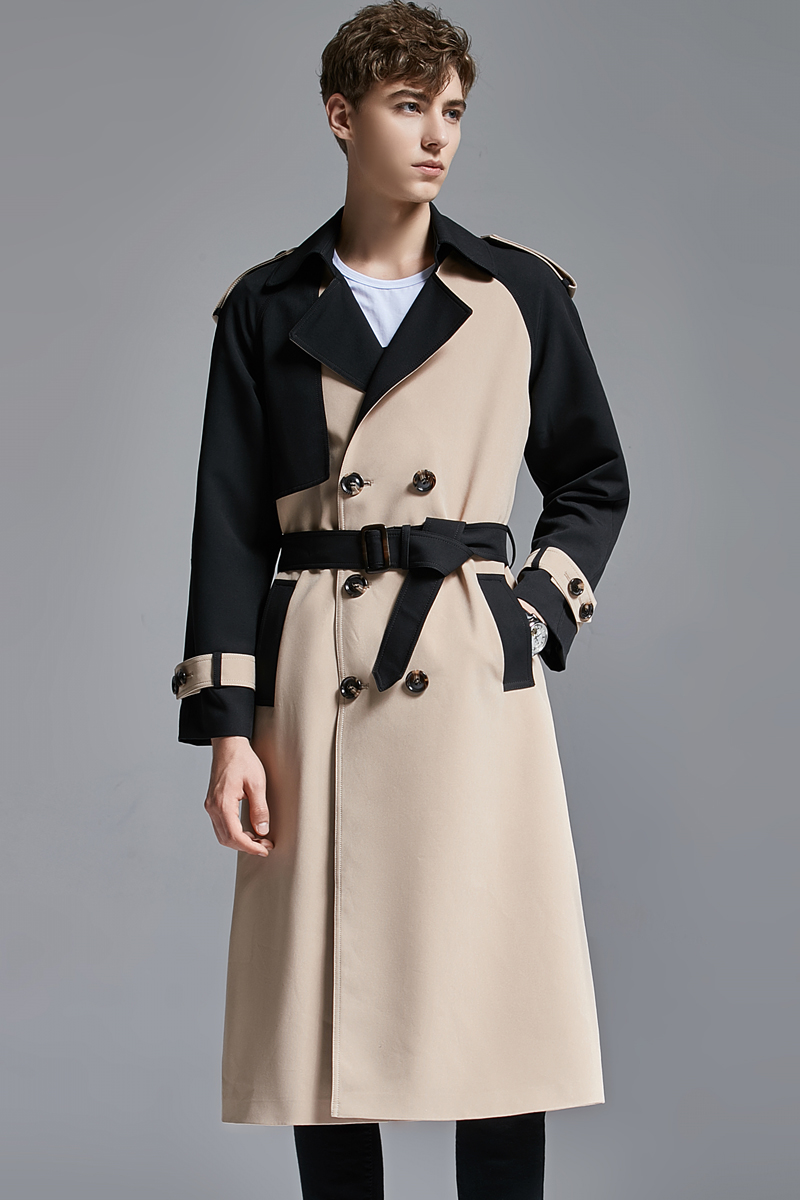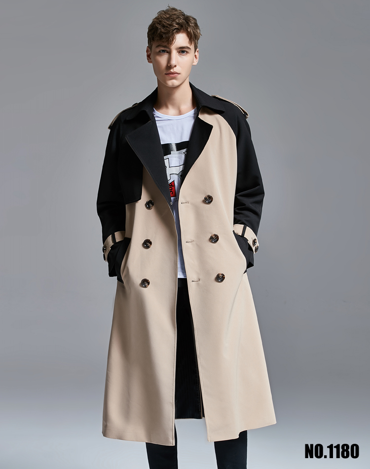 JOE CHAO URBAN STYLE COLOR BLOCK OVER THE KNEE TRENCH COAT