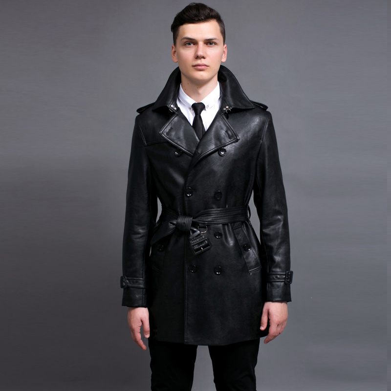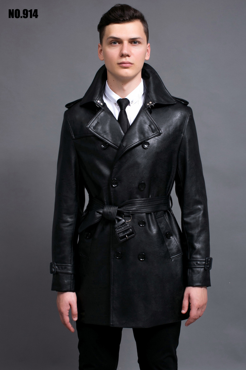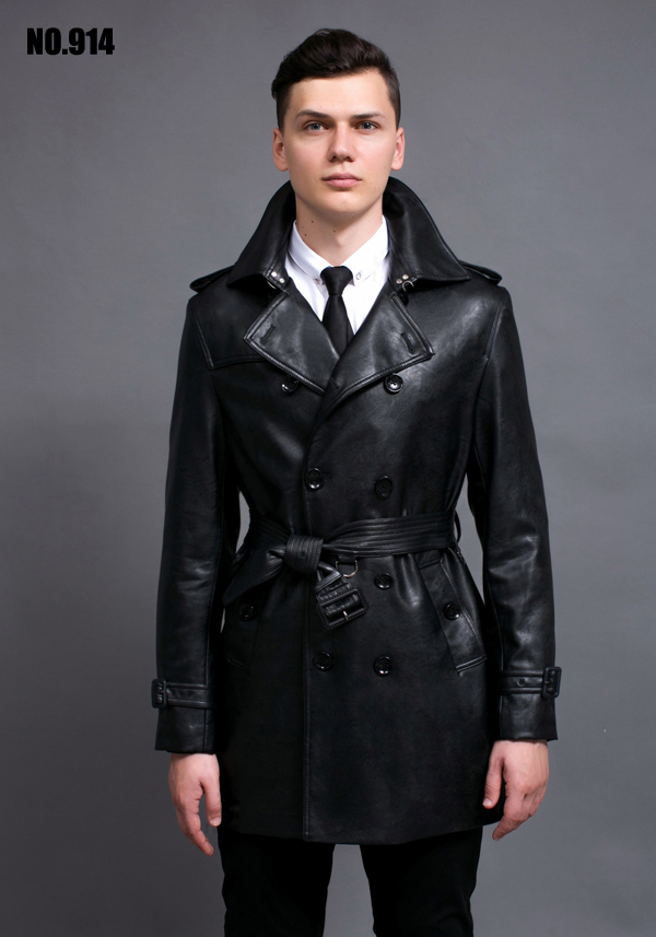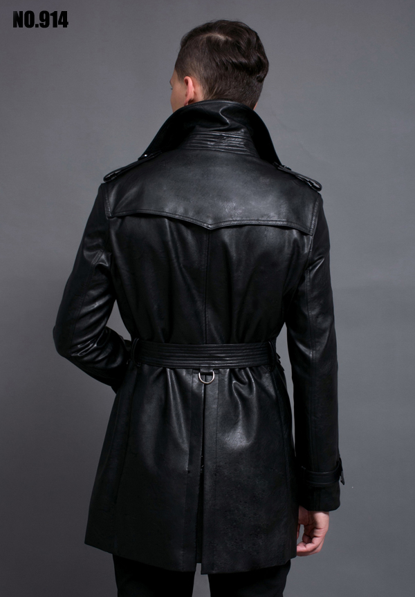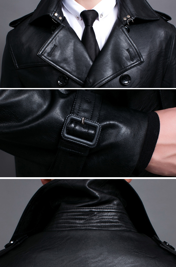 JOE CHAO URBAN BRITISH STYLE MID LENGTH PU LEATHER JACKET IN BLACK