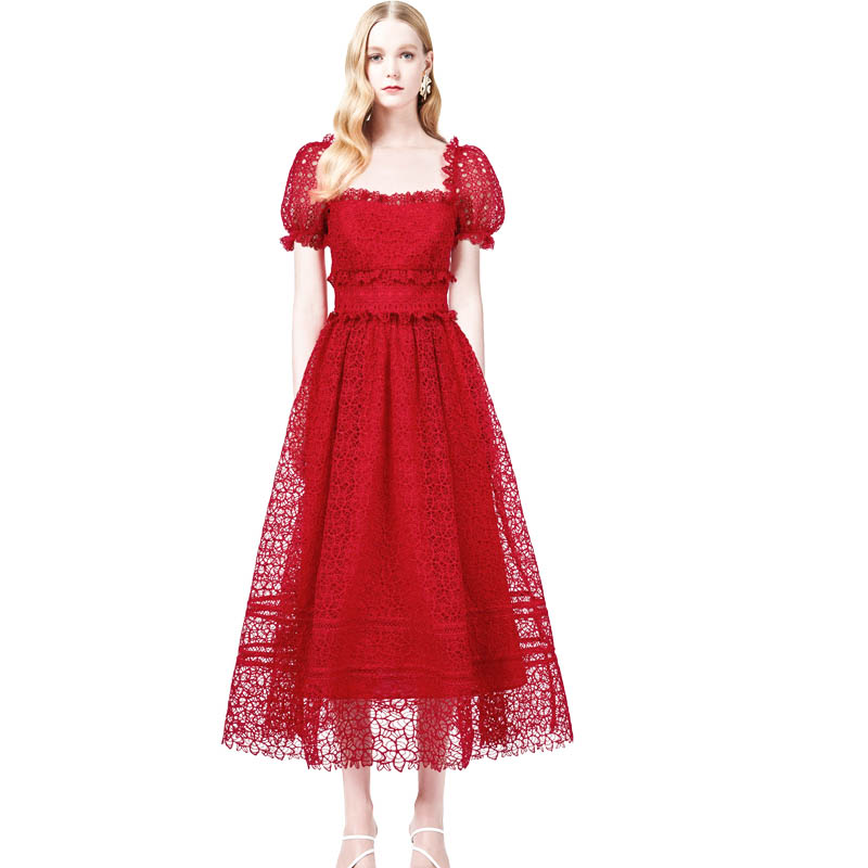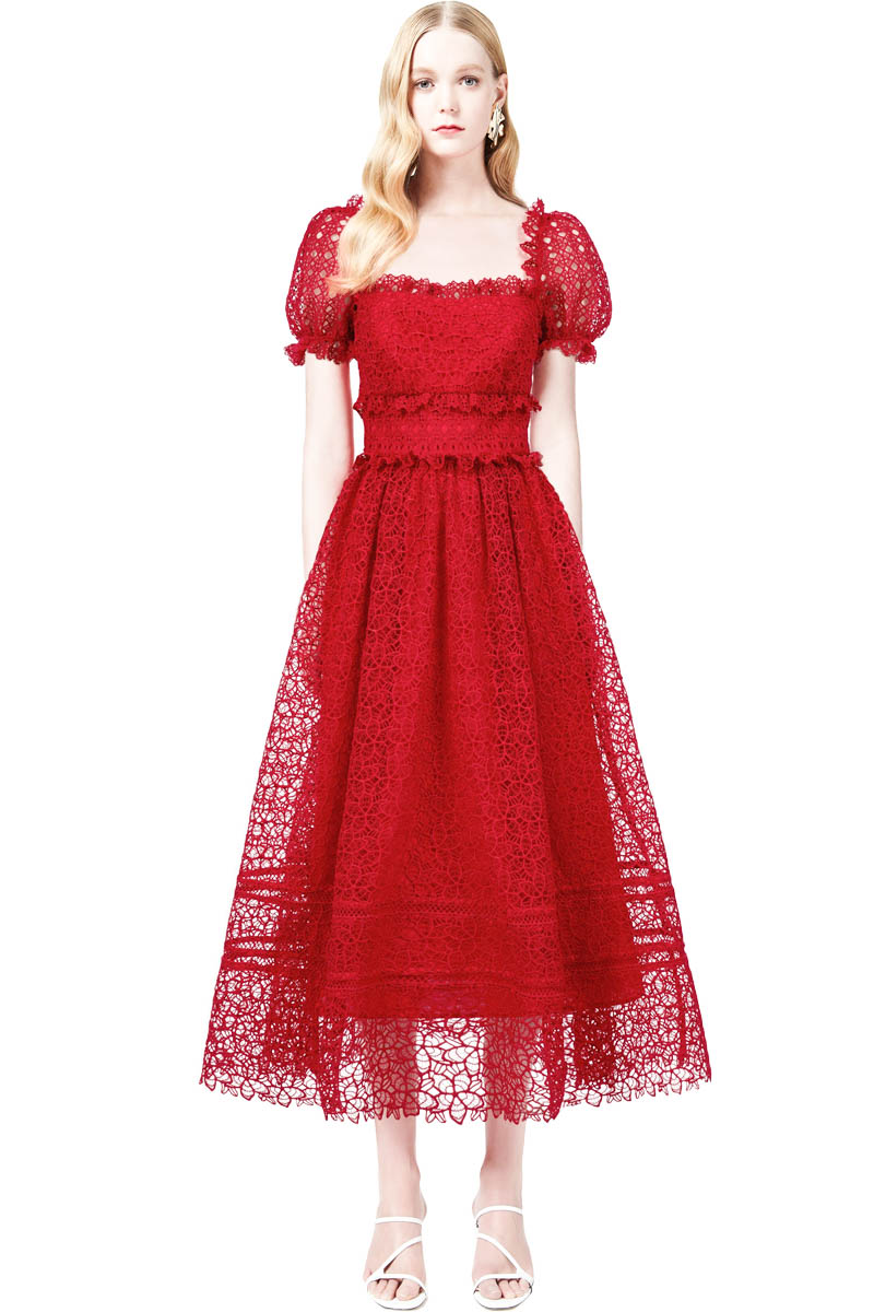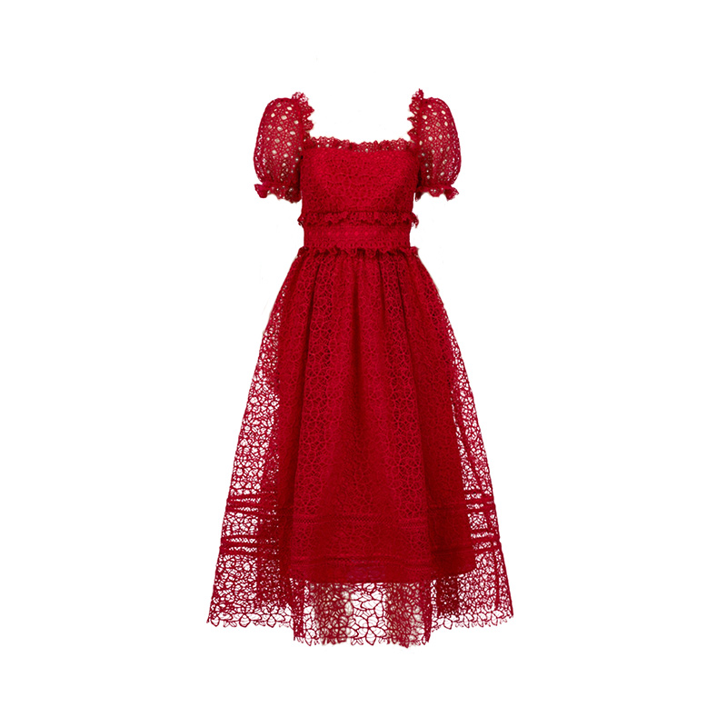 ALICE LACE MIDI DRESS WITH PUFF SLEEVE DETAIL