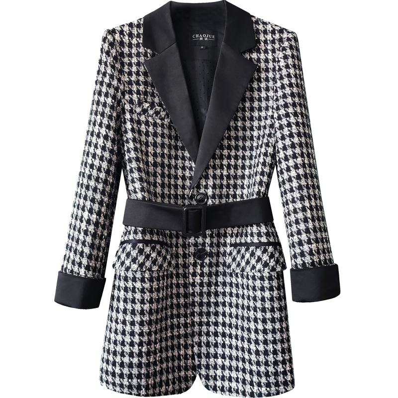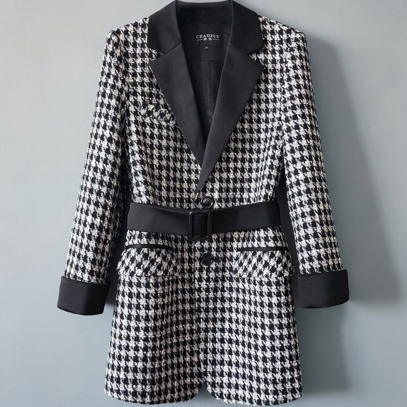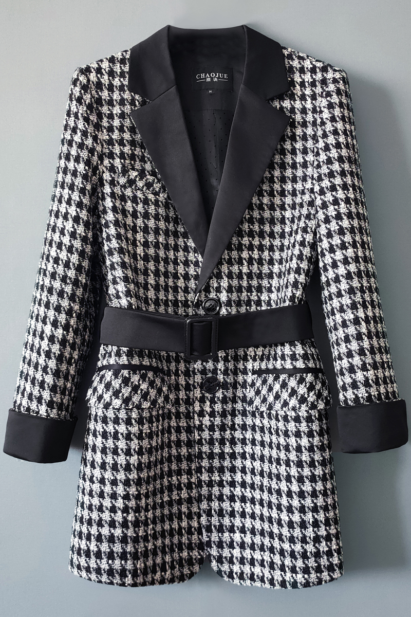JOE CHAO ZAZO MID LENGTH HOUNDSTOOTH SUIT JACKET