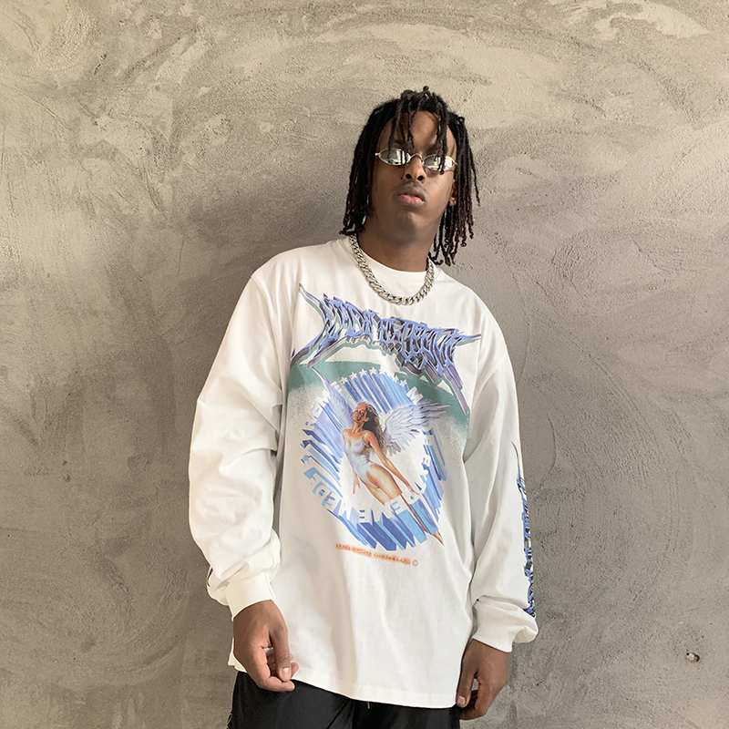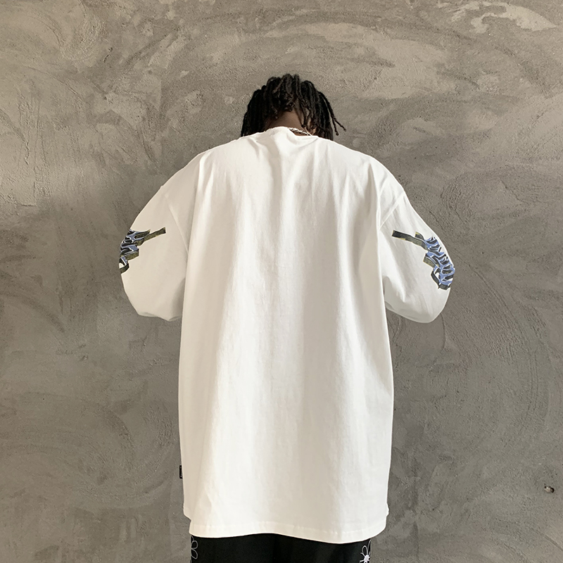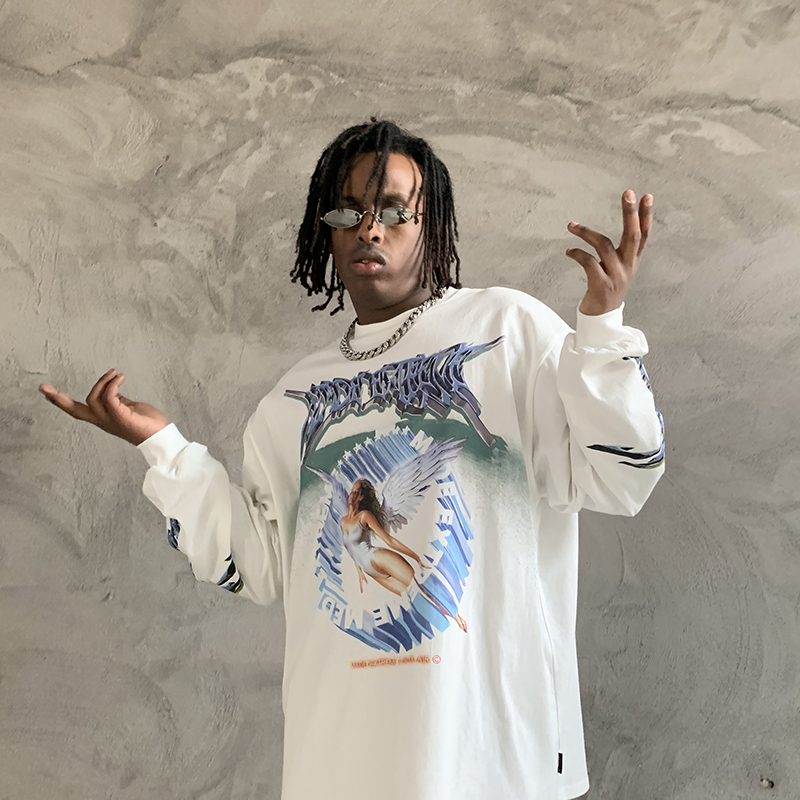 ZOCPO WELLWO DOODLE RABBIT PRINT CREW NECK SWEATSHIRT