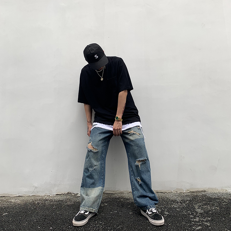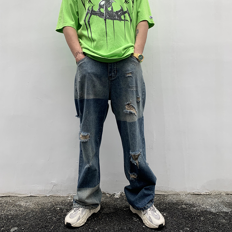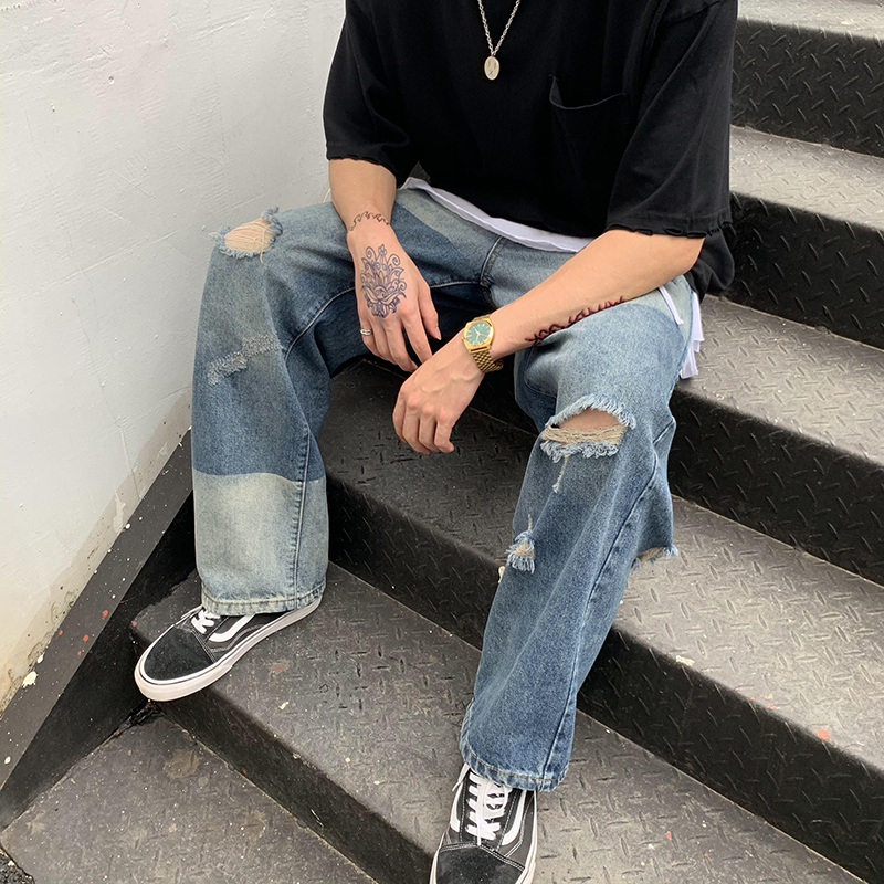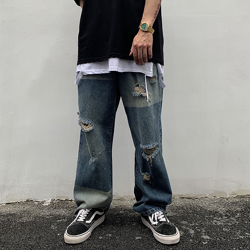 DARK KNIGHT LEWIS EXTREME WIDE LEG RIPPED DENIM JEAN SWEATPANTS