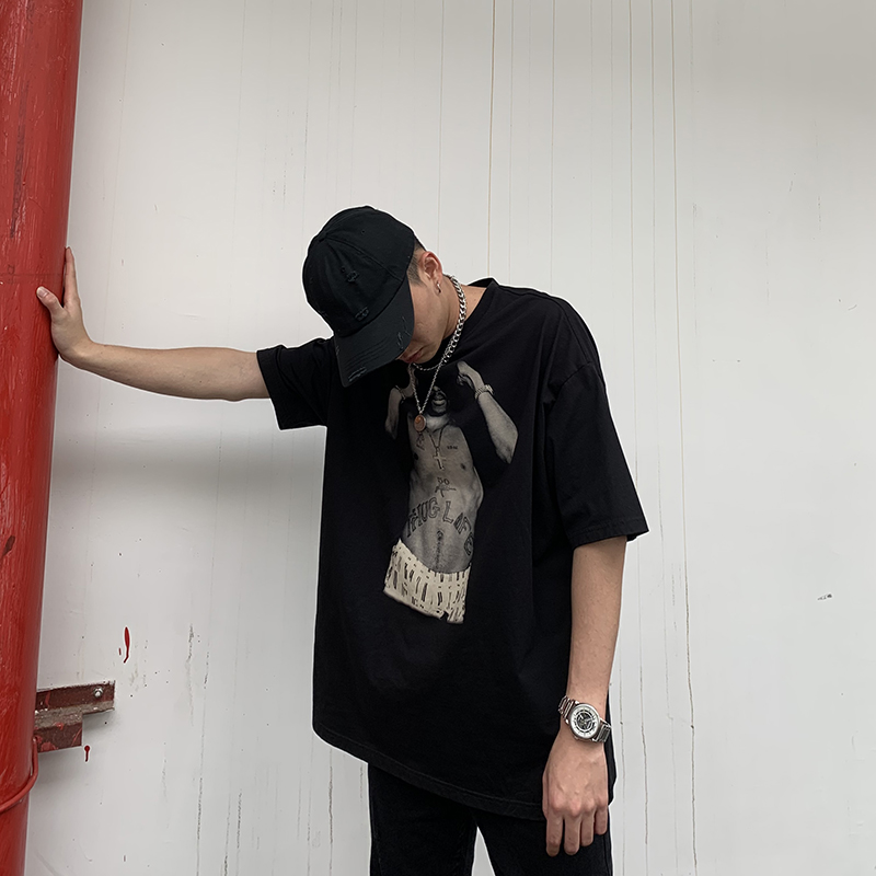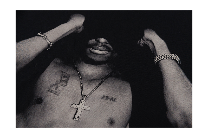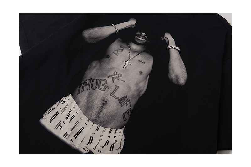 LEWIS EXTREME 2PAC RAPPER PORTRAIT PRINT CREW NECK T SHIRT IN BLACK