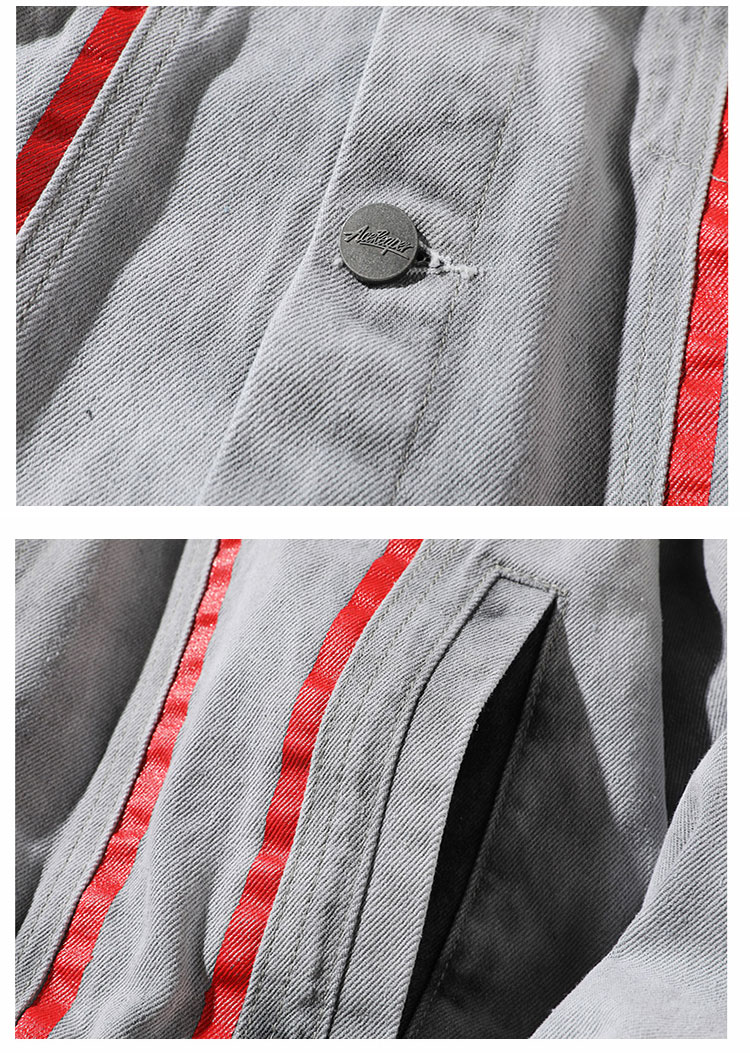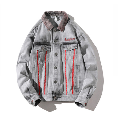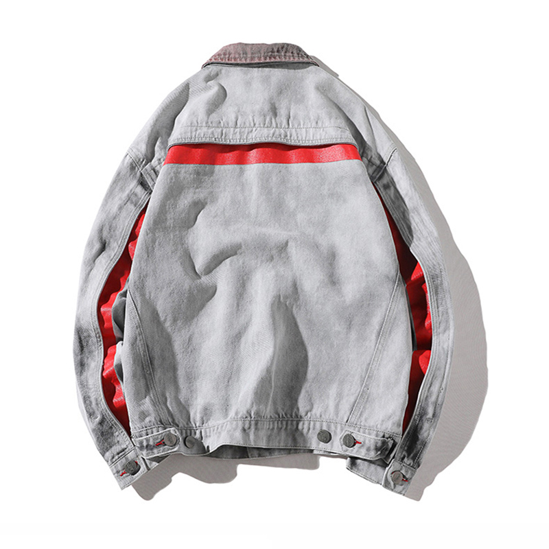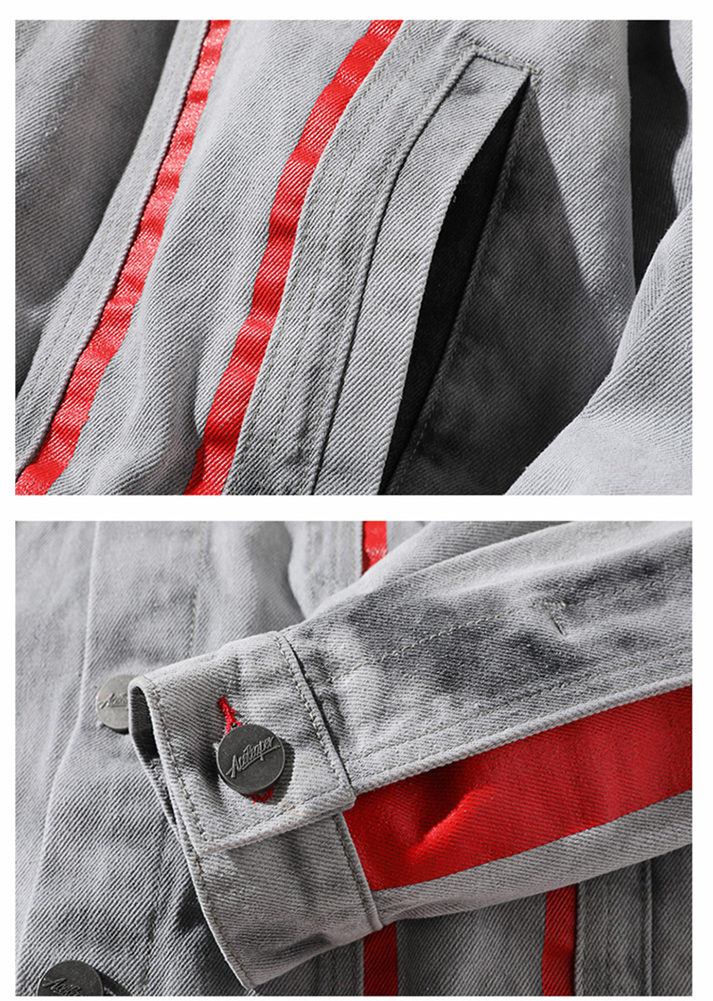 RHYMONSTER REAPER CASUAL DENIM JEAN JACKET WITH RED STRIP