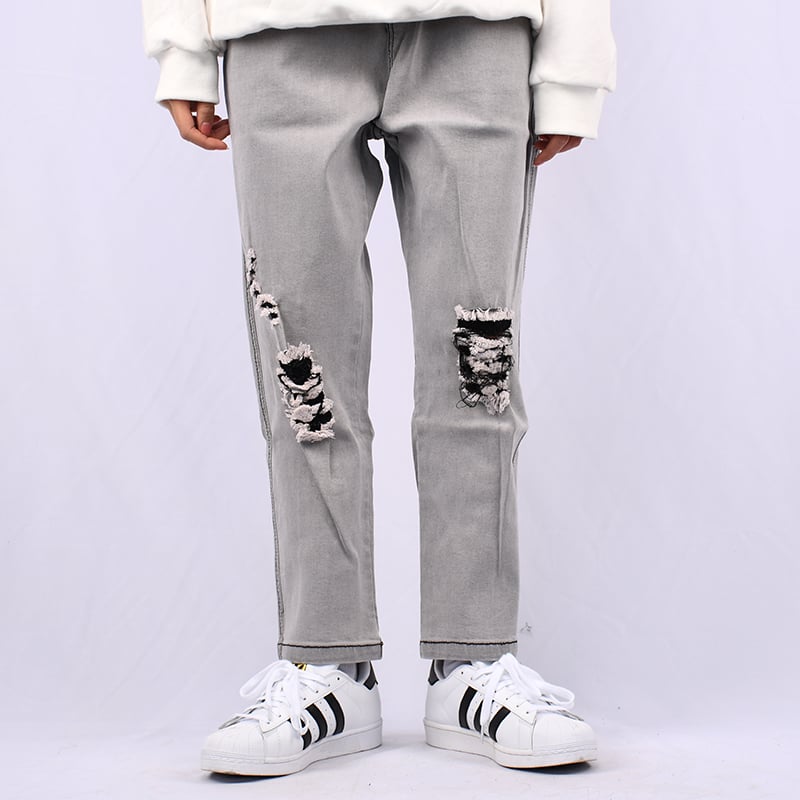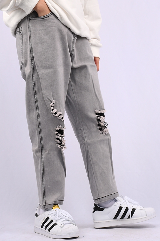 RHYMONSTER HOBART JAPANESE STYLE RIPPED DENIM JEAN SWEATPANTS