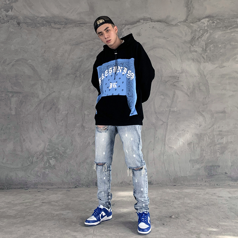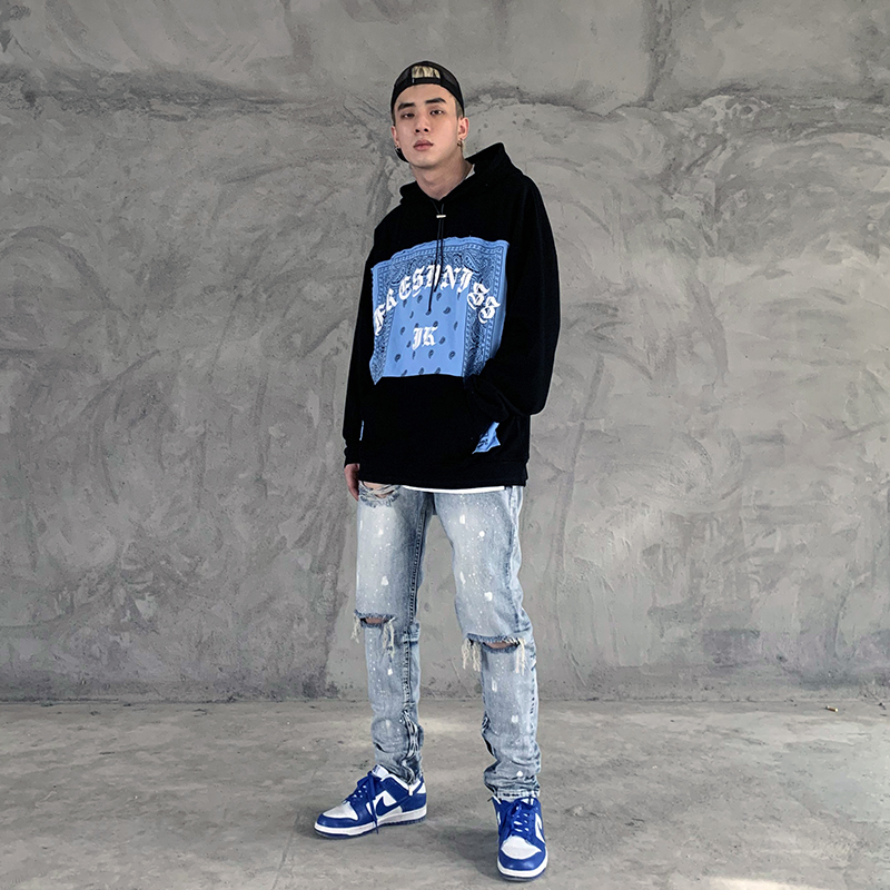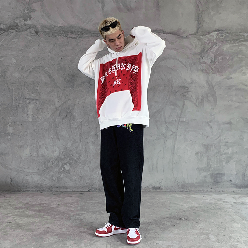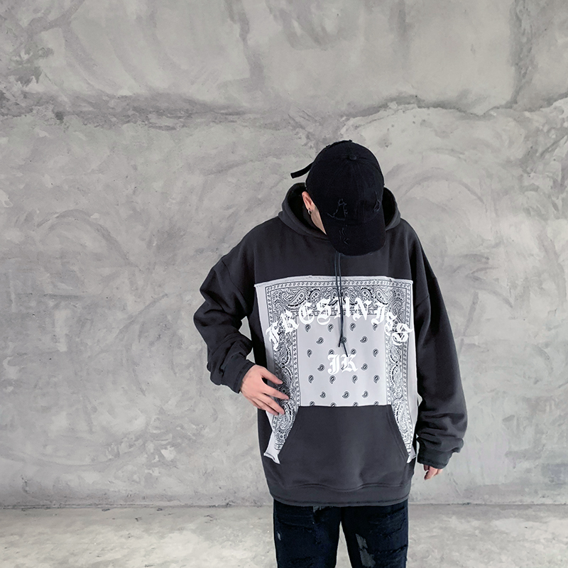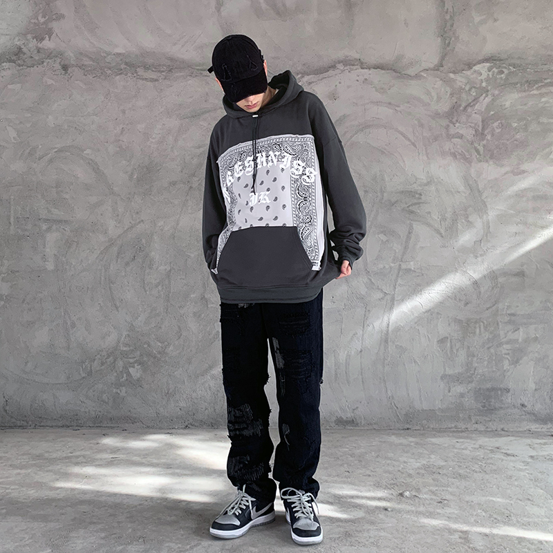 URBAN STYLE TAFFO IRREGULAR CUT ELASTIC CUFFS HOODIE SWEATSHIRT