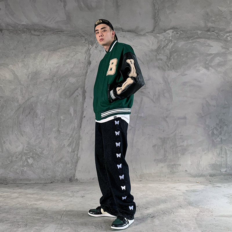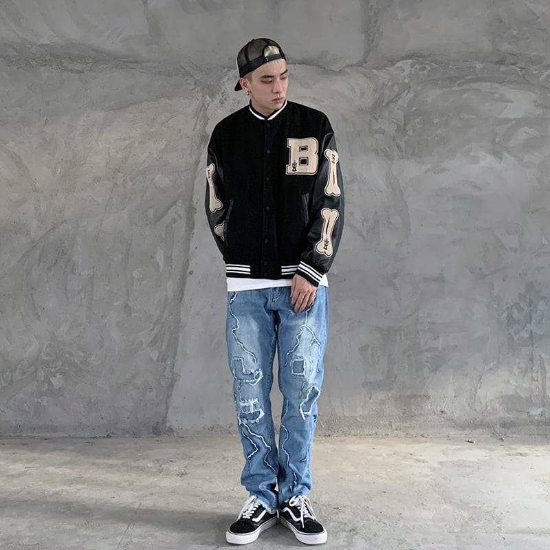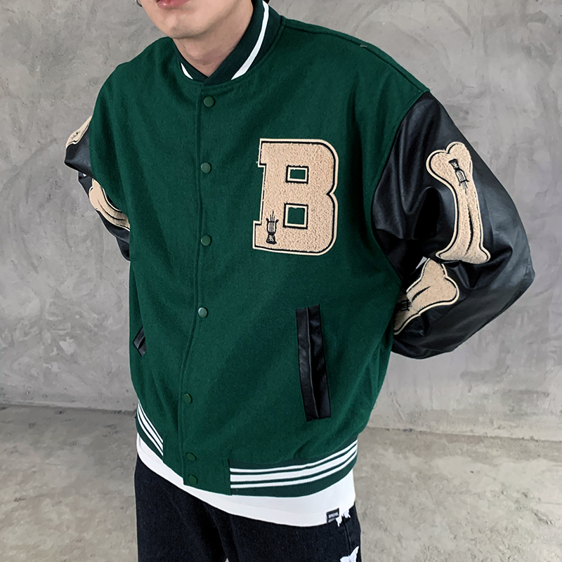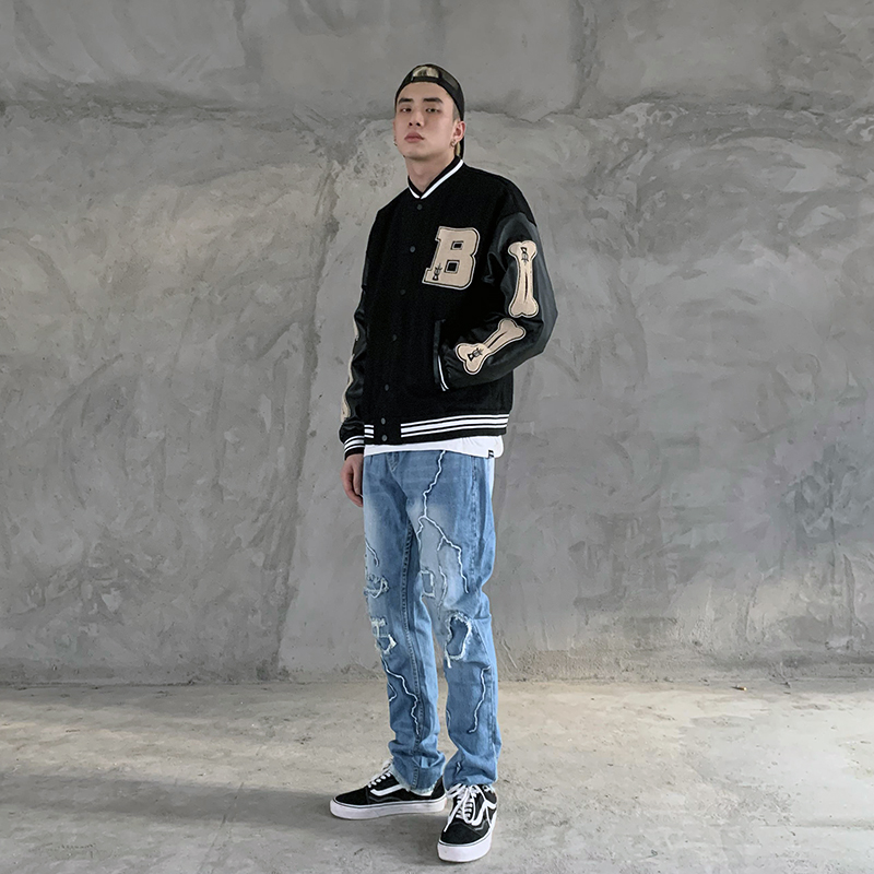 AXU RHYMONSTER AMERIXA EMBROIDERED PU LEATHER BASEBALL JACKETS