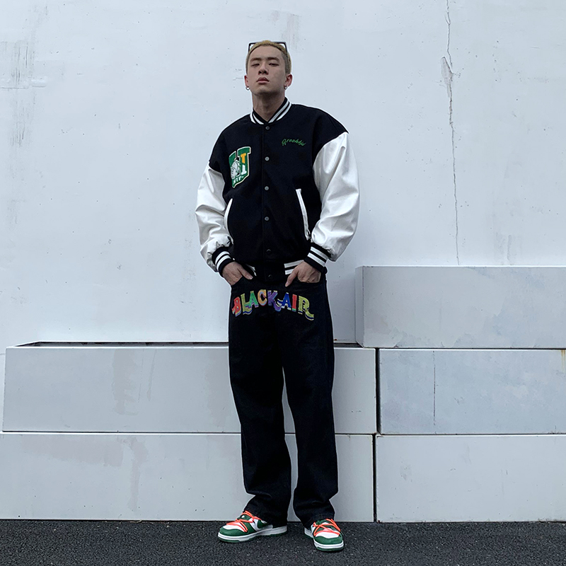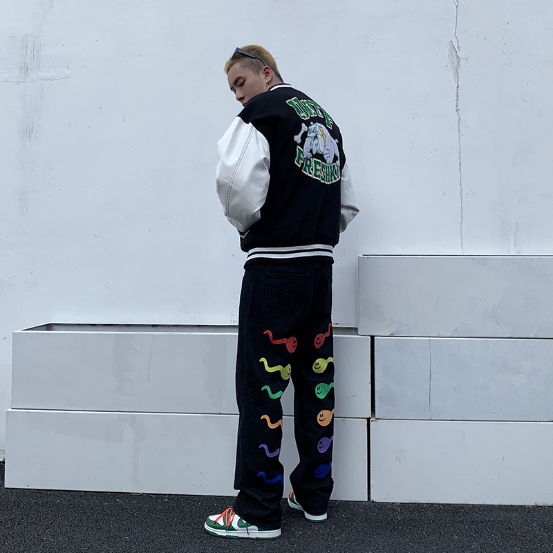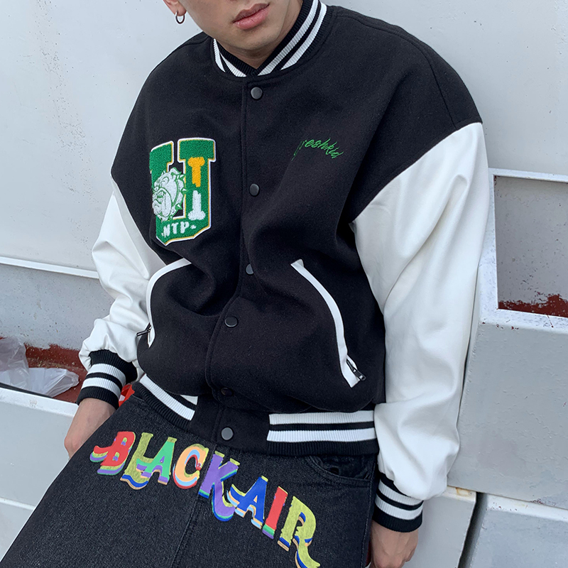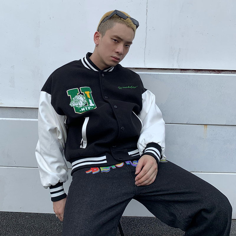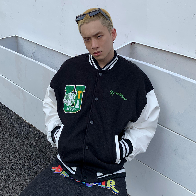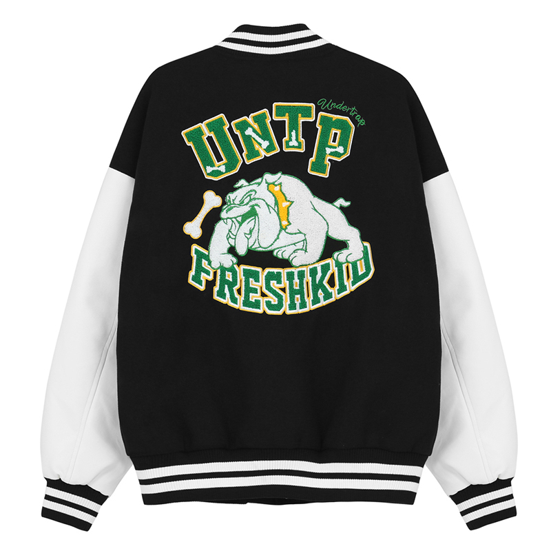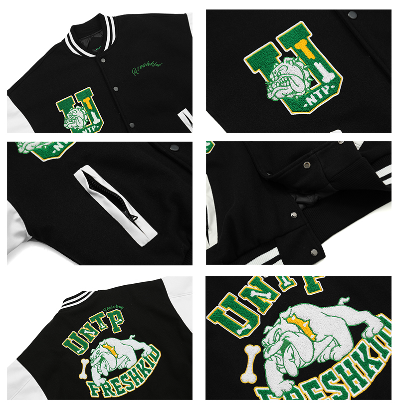 MR TOAD UNTP URBAN STYLE FRESHKID BULLDOG EMBROIDERED BASEBALL JACKET