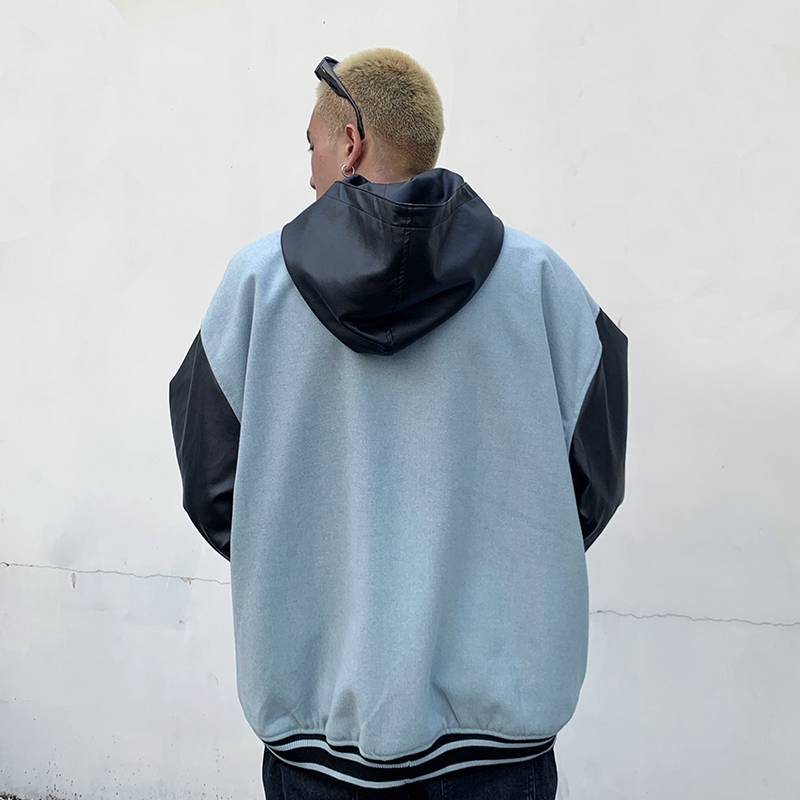 MR TOAD FAKERY RETRO STYLE WOOLEN HOODED JACKET WITH FAUX LEATHER