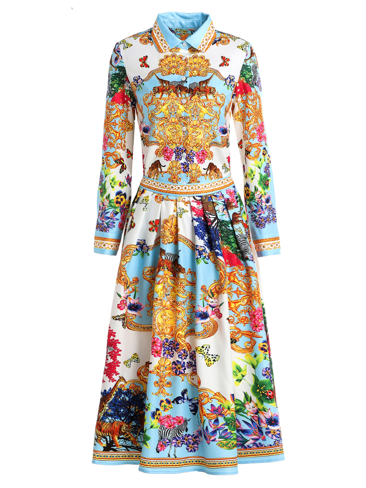ALICE ALL OVER PRINT LONG SLEEVE SHIRT DRESS