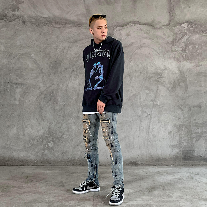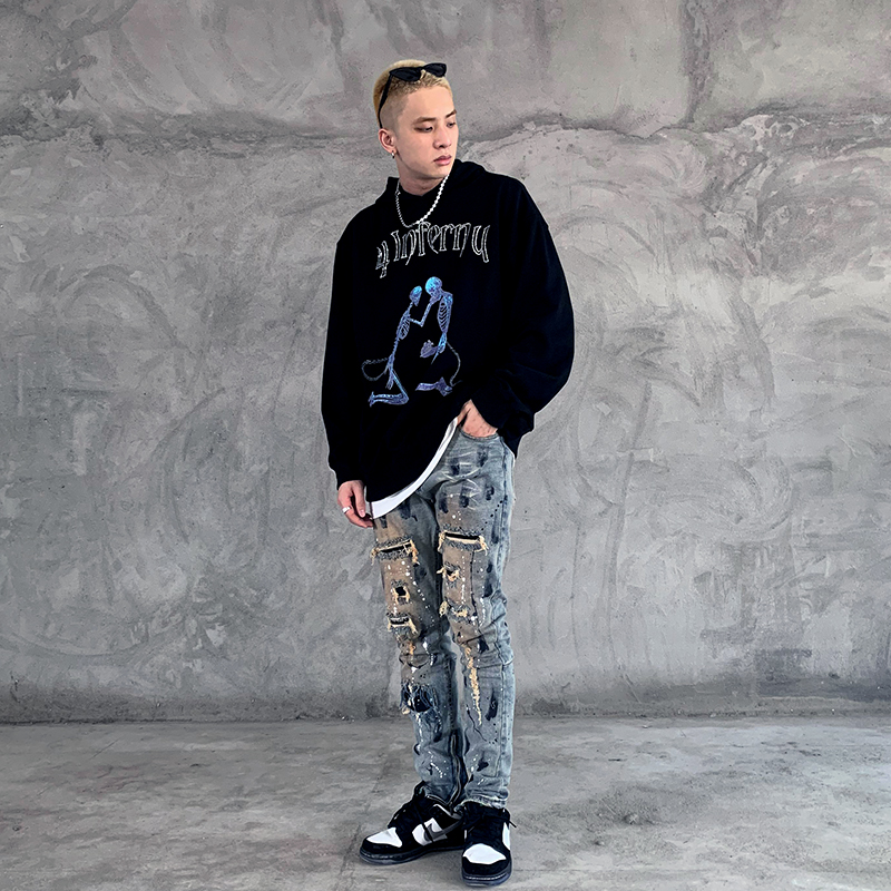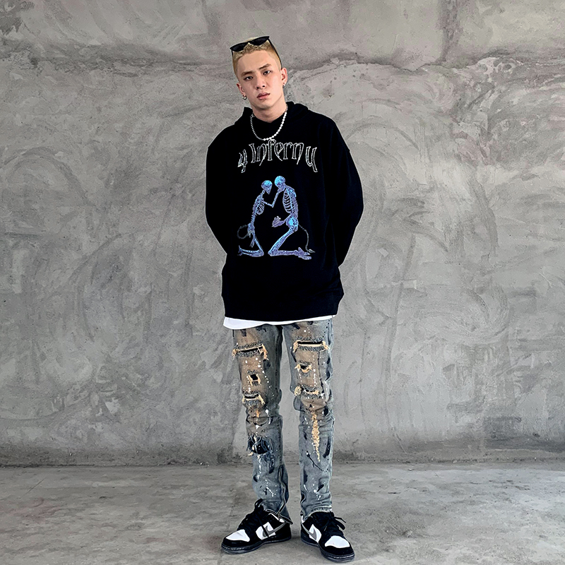 FOAD VAMTAC FOUR INFERN YOU DIAMOND SKULL PRINT HOODIE SWEATSHIRTS