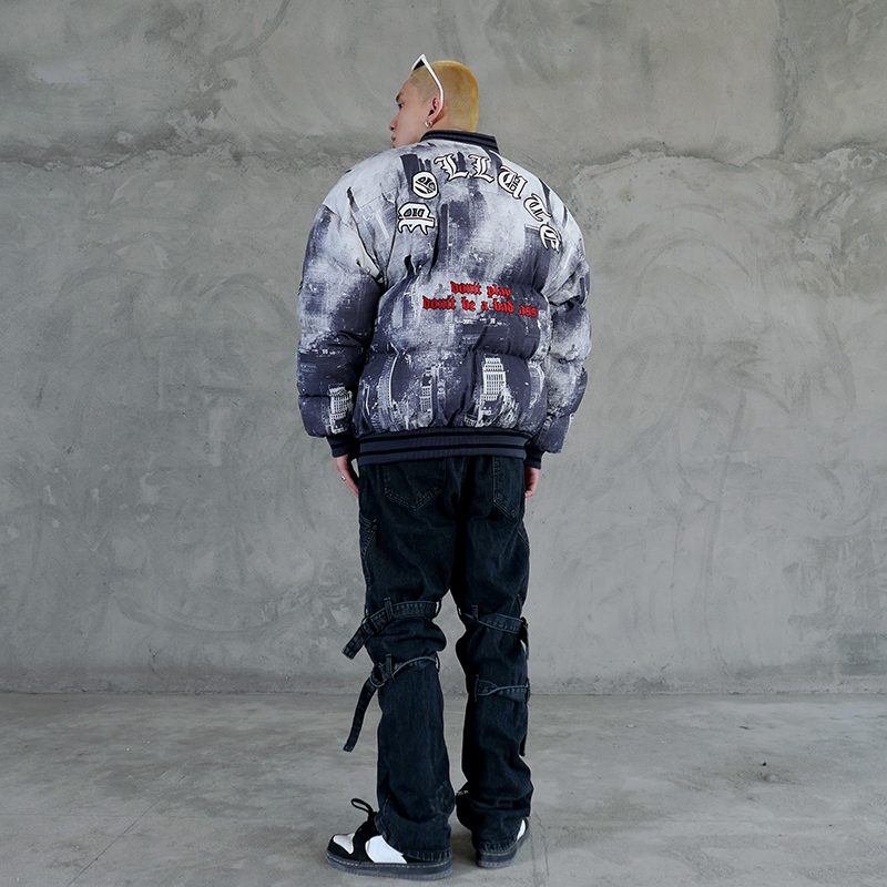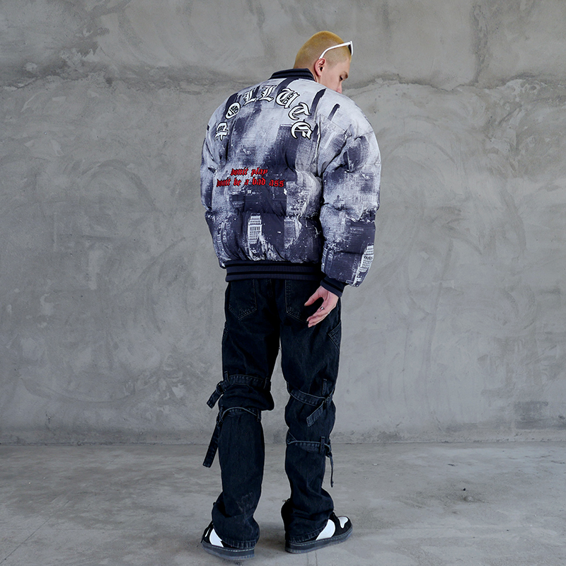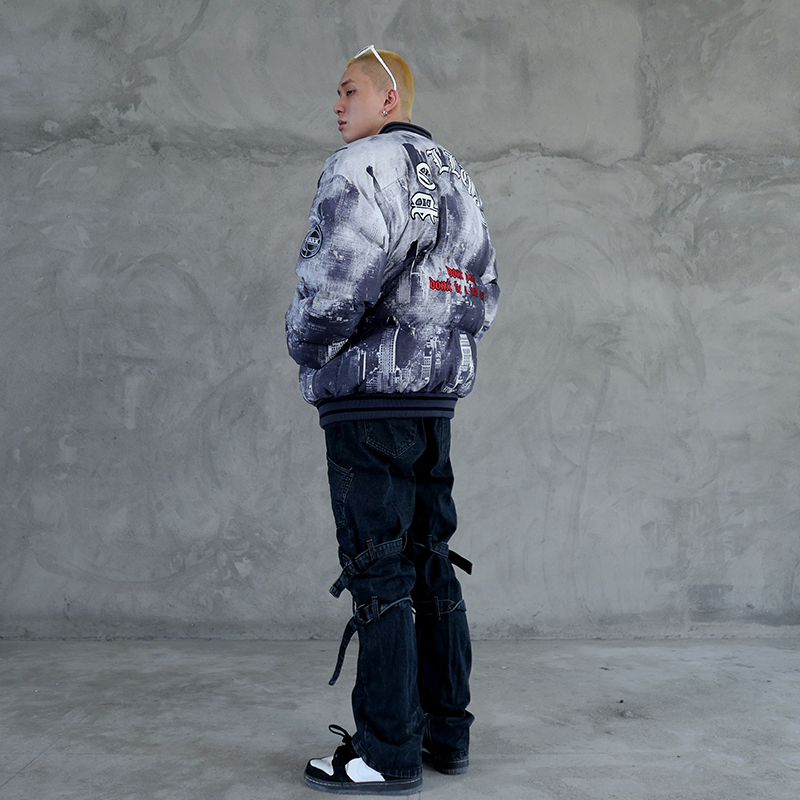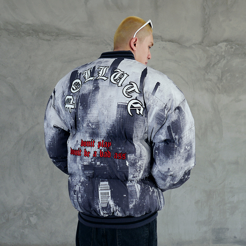 KEX POLLA DONT BE A BAD ASS CITIES PRINT BOMBER JACKET IN BLACK