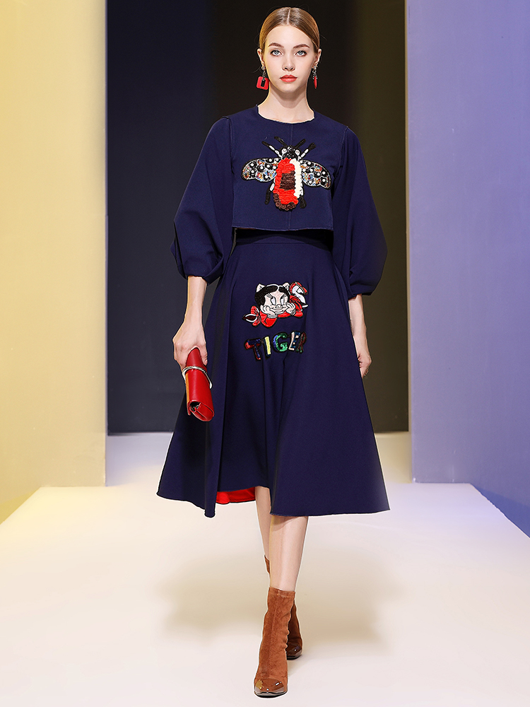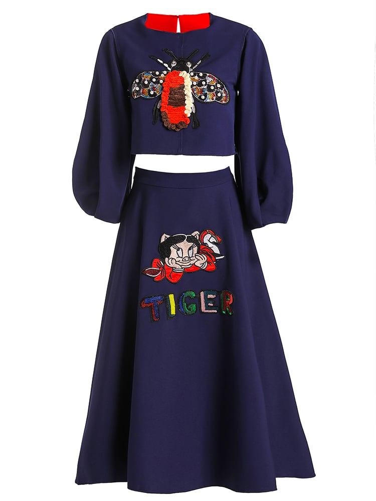 ALICE EMBELLISHED LONG SLEEVE TOP AND SKIRT SET