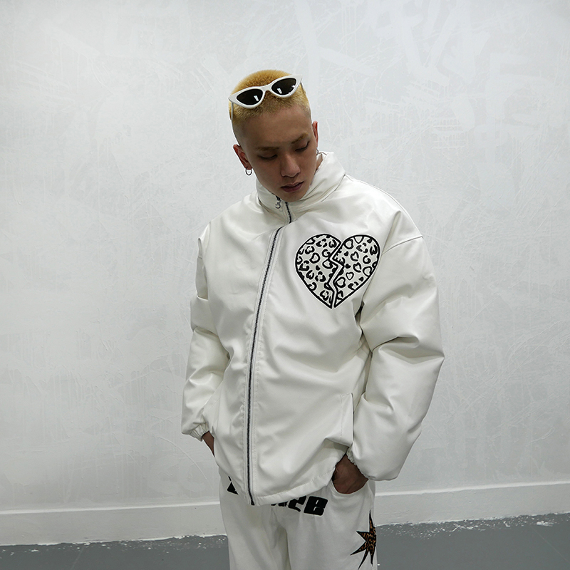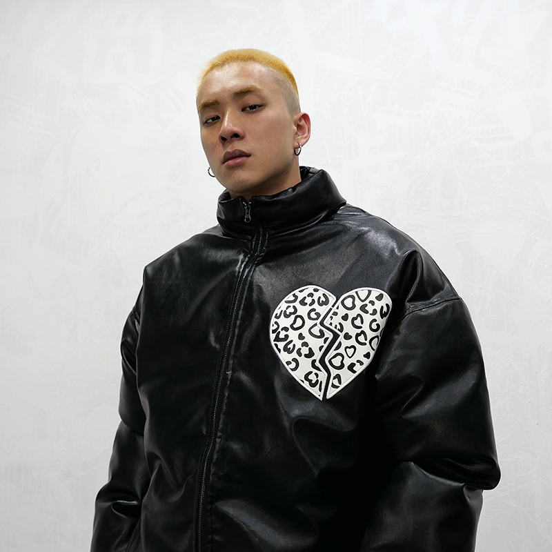 BRATTI COZZO HIGH NECK WINDPROOF COTTON PADDED FAUX LEATHER JACKET