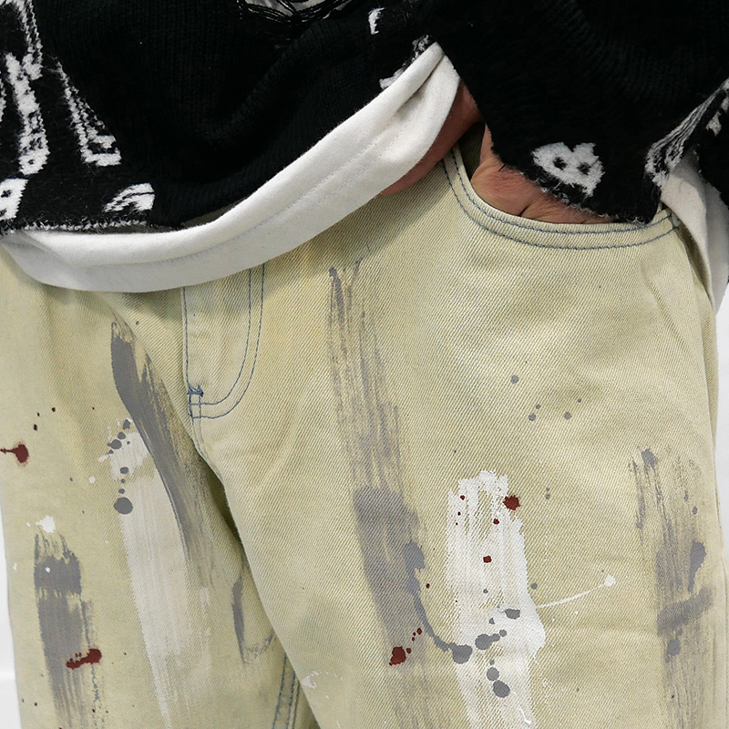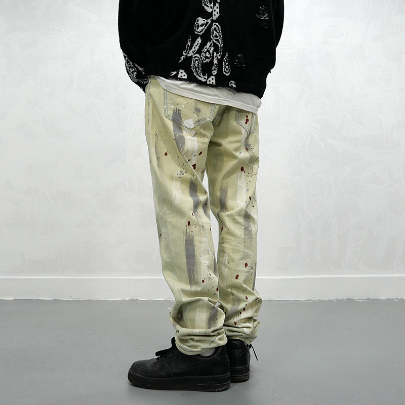 POTTO RECTORA SPLASH INK TIE DYED DENIM JEAN SWEATPANTS