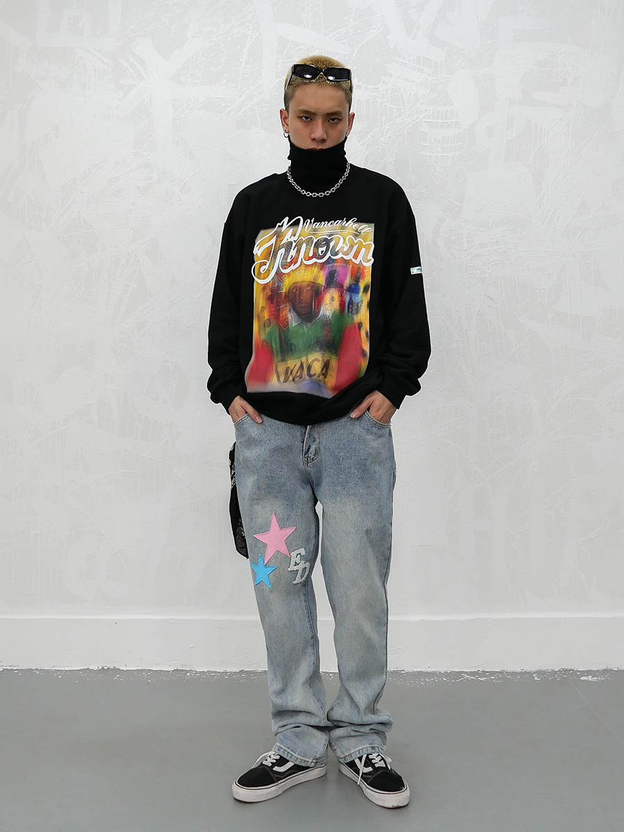 DECORATIVE PATCH WORK JAPANESE DESIGN UNISEX SWEATSHIRT B283-M38