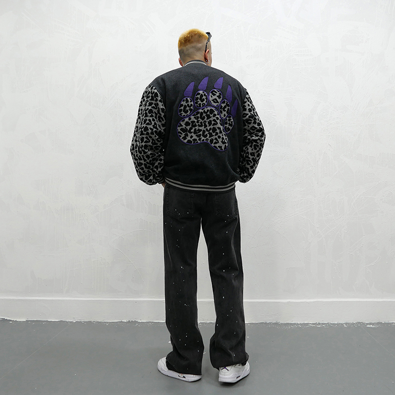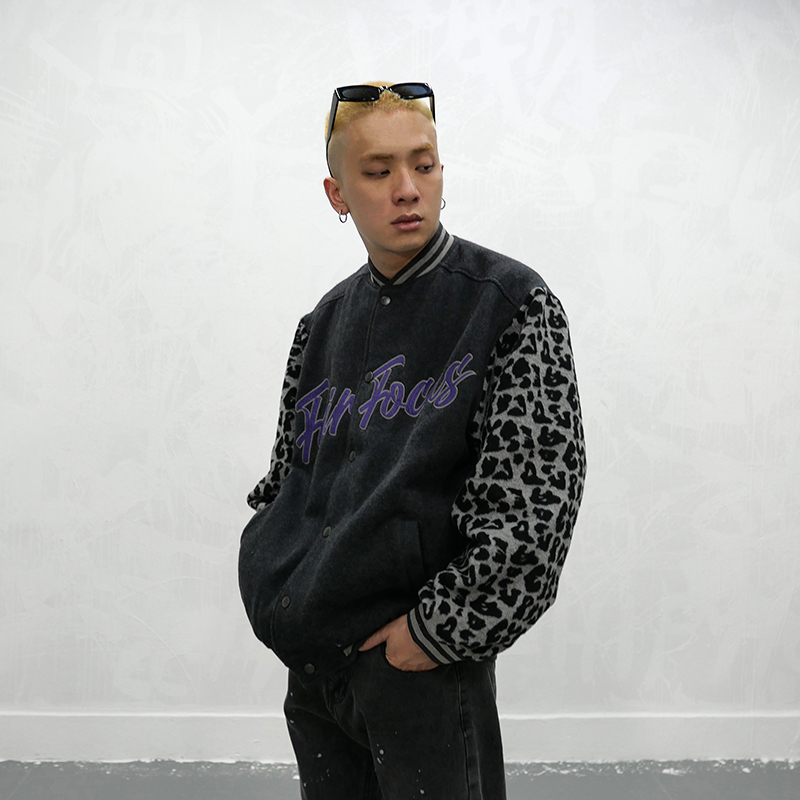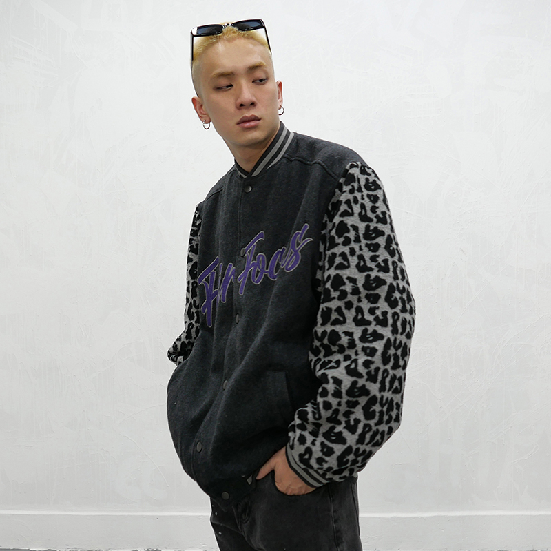 RICKY MORZIE FAIR FOCUS LEOPARD DETAILED RAPPER COLLEGE JACKET