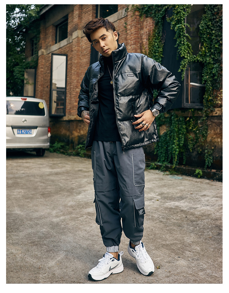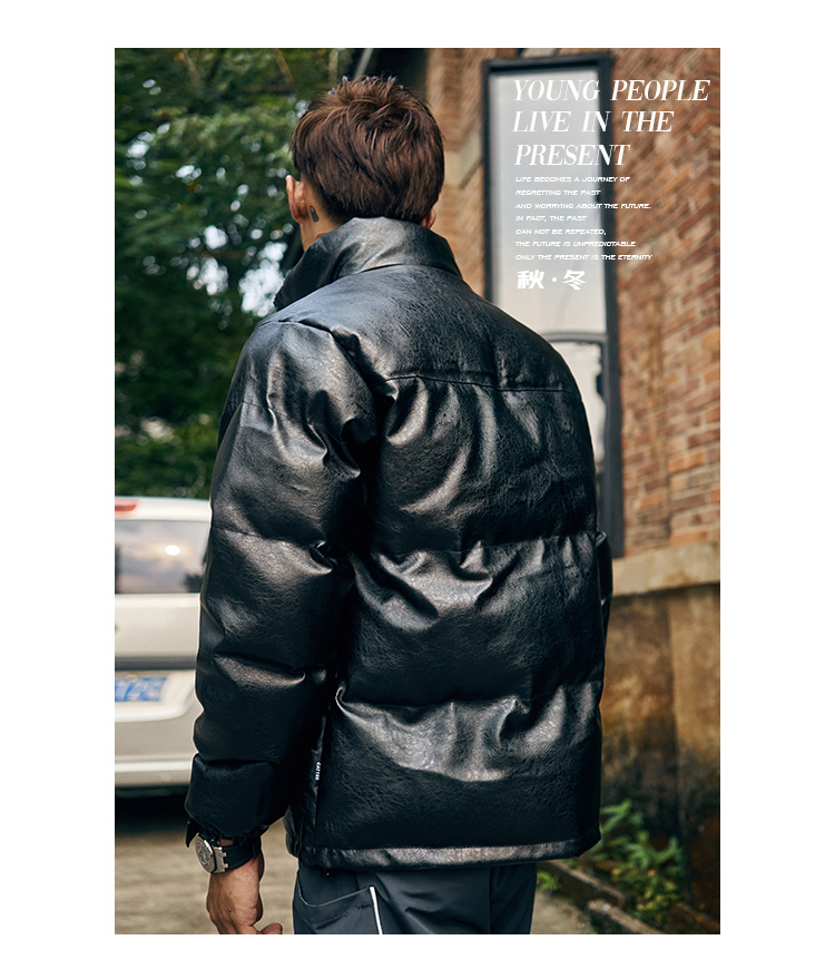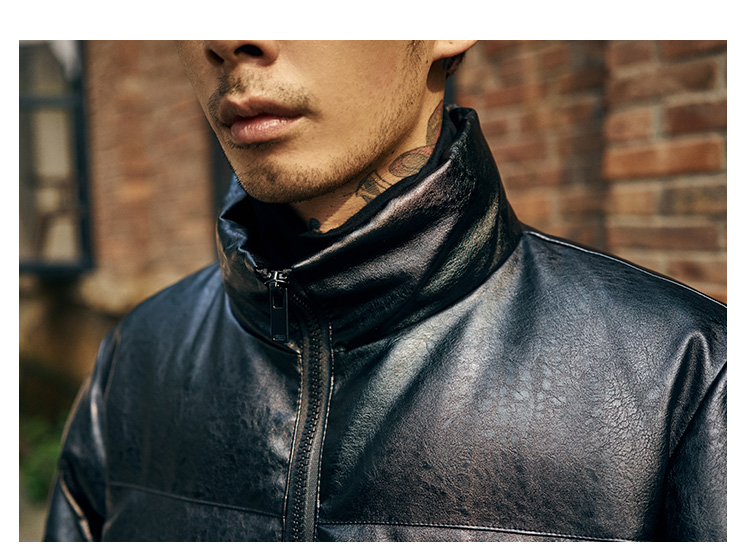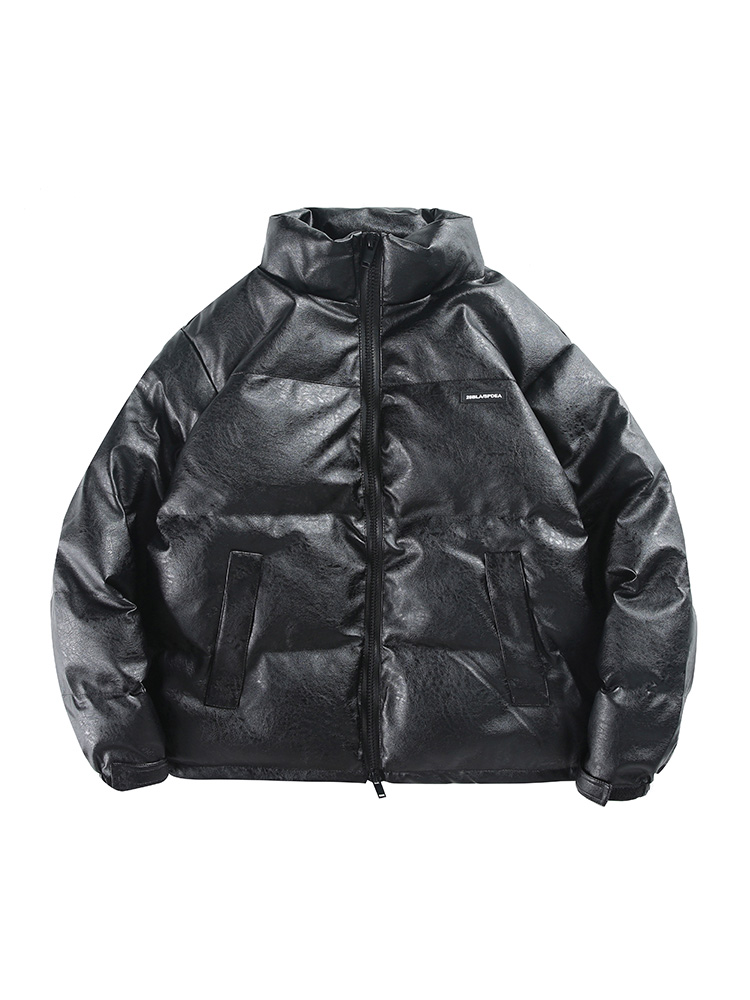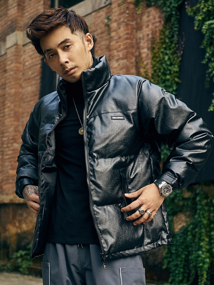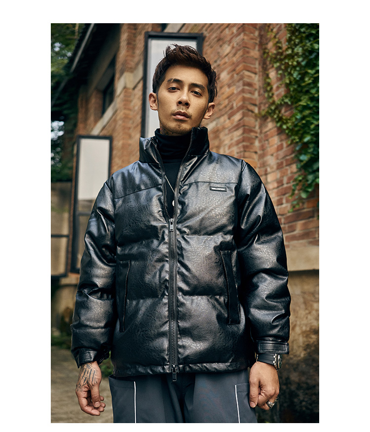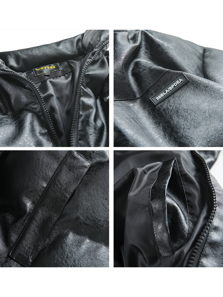 BRATTI COZZO HIGH NECK WINDPROOF COTTON PADDED FAUX LEATHER JACKET