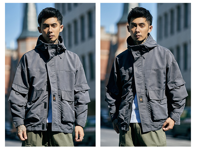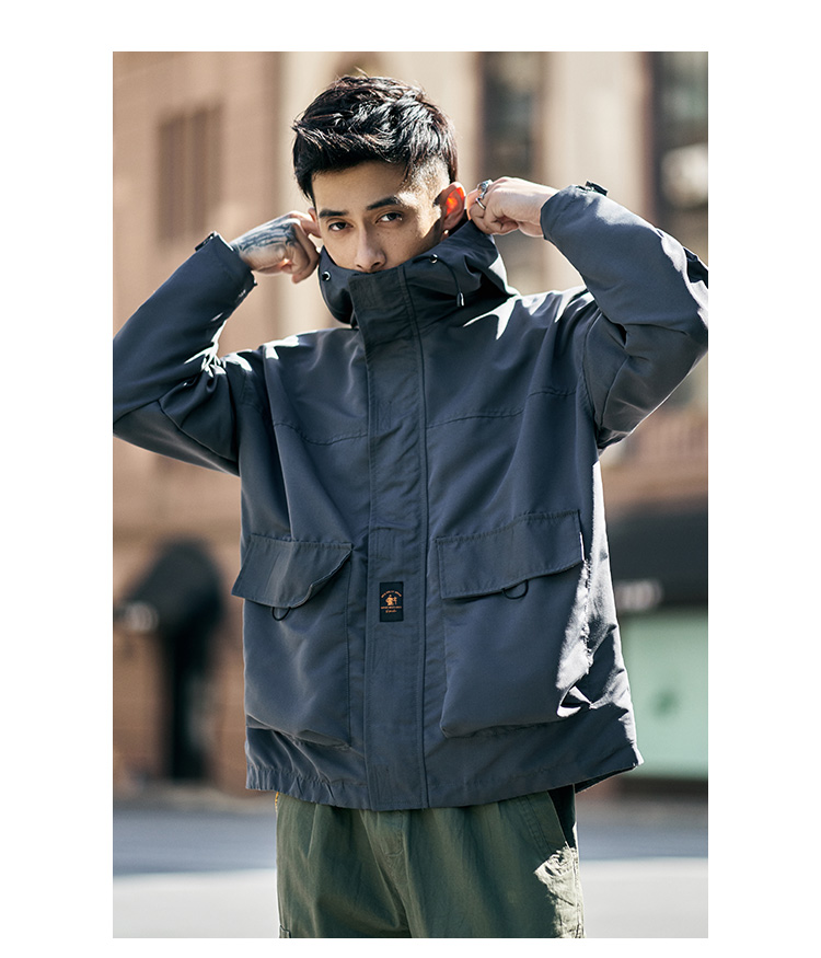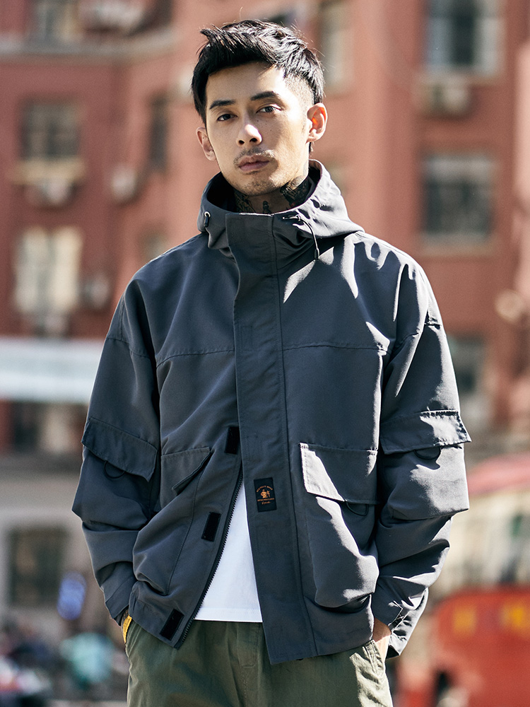 FREQ MARBIE HIGH NECK WINDPROOF HOODED WINDBREAKER JACKET