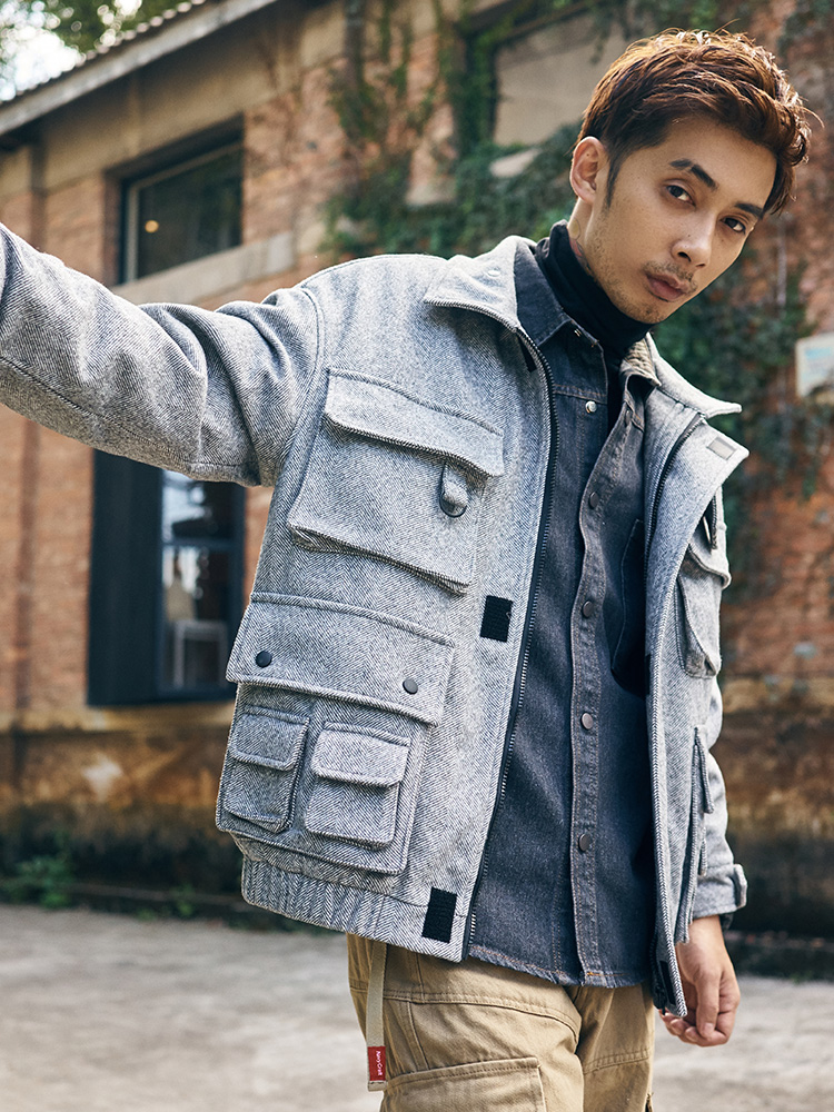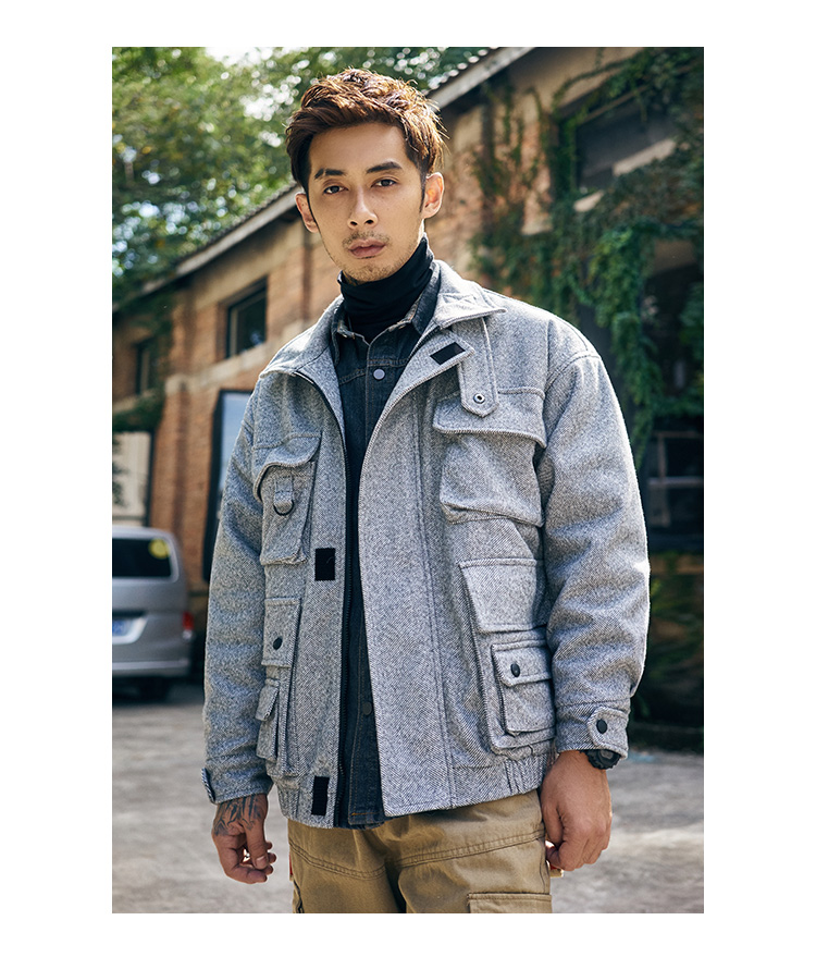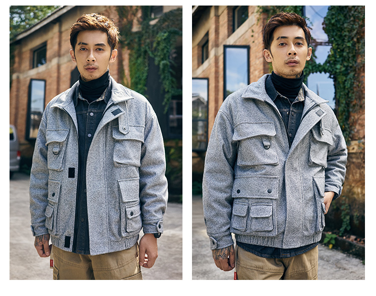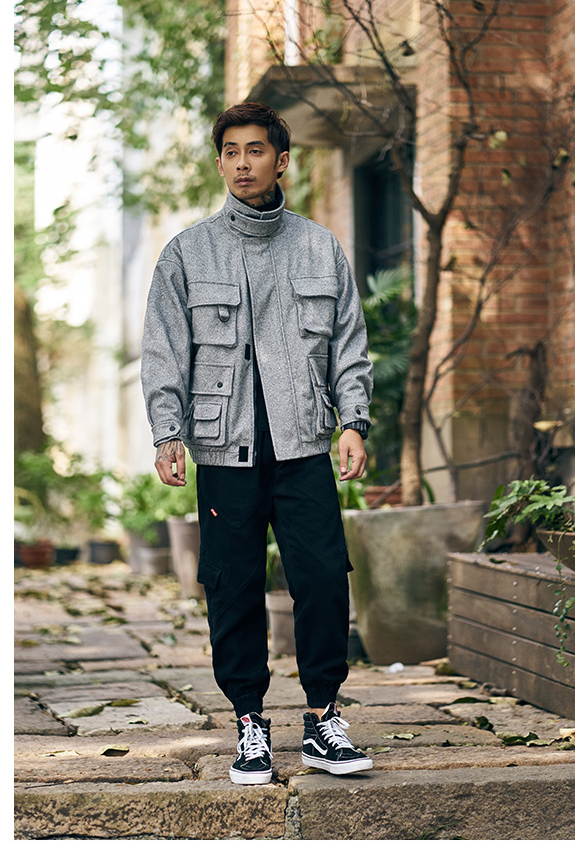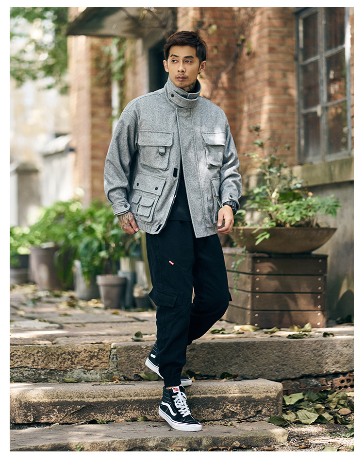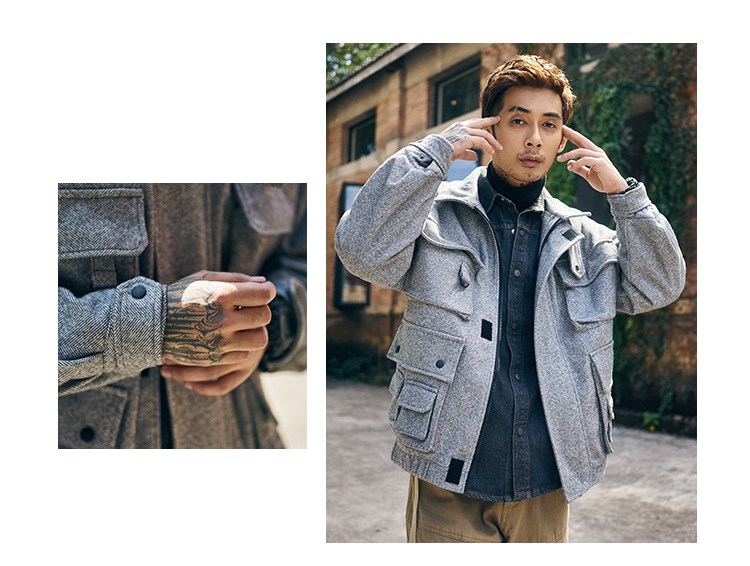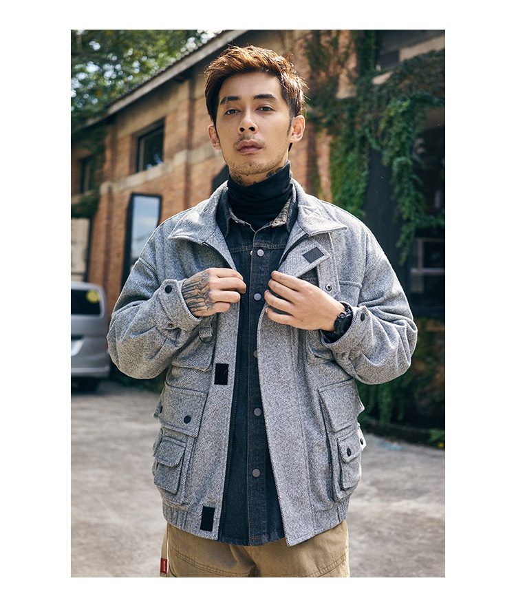 FREQ MARBIE HIGH NECK WINDPROOF THICK WOOLEN JACKET