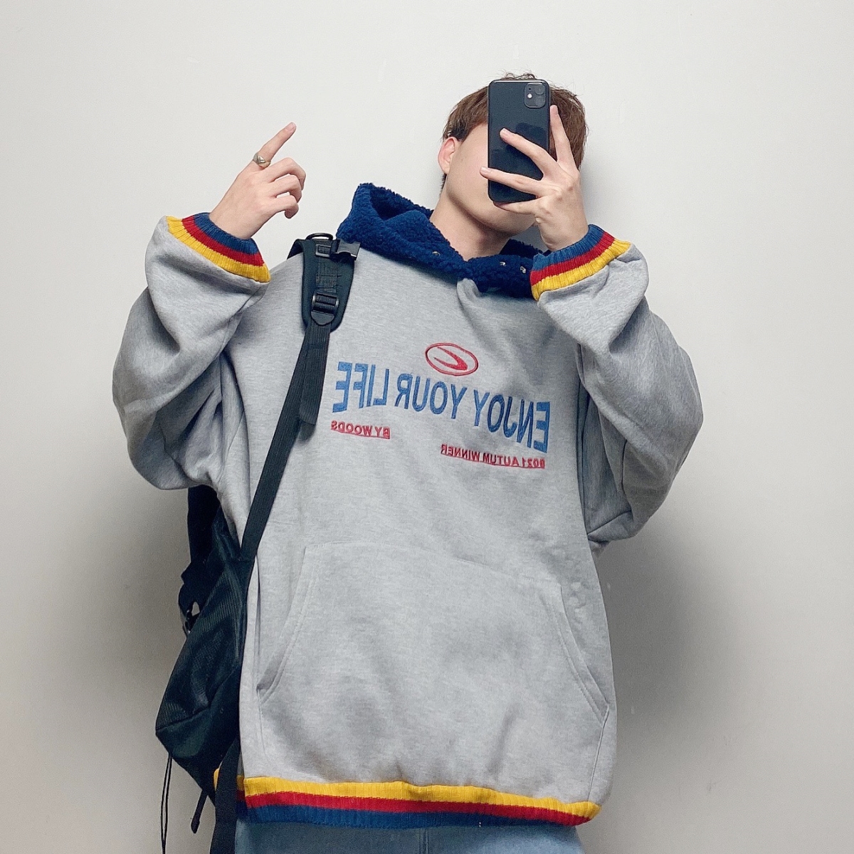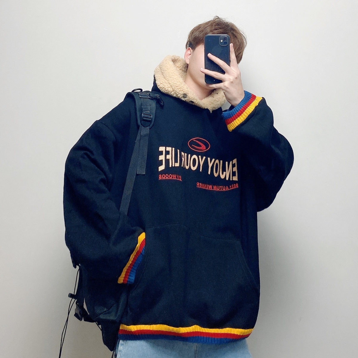 GOMBO BOB URBAN STYLE CASUAL VELVET WOOLEN HOODIE SWEATSHIRT