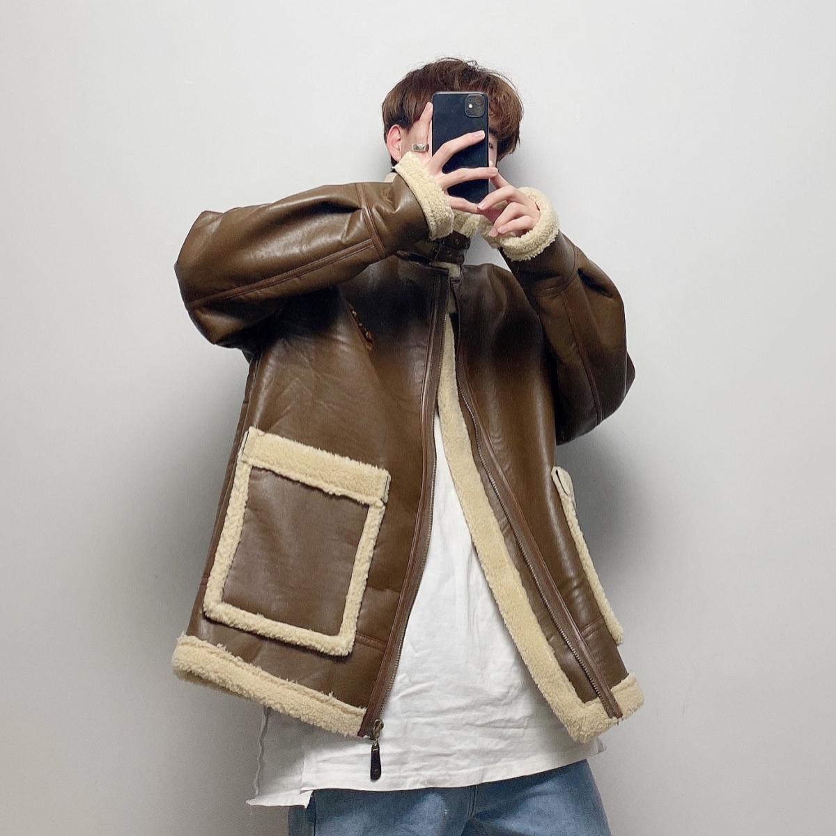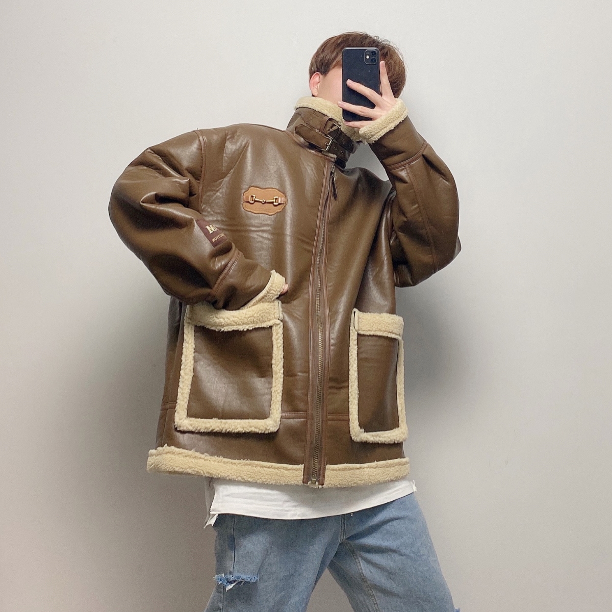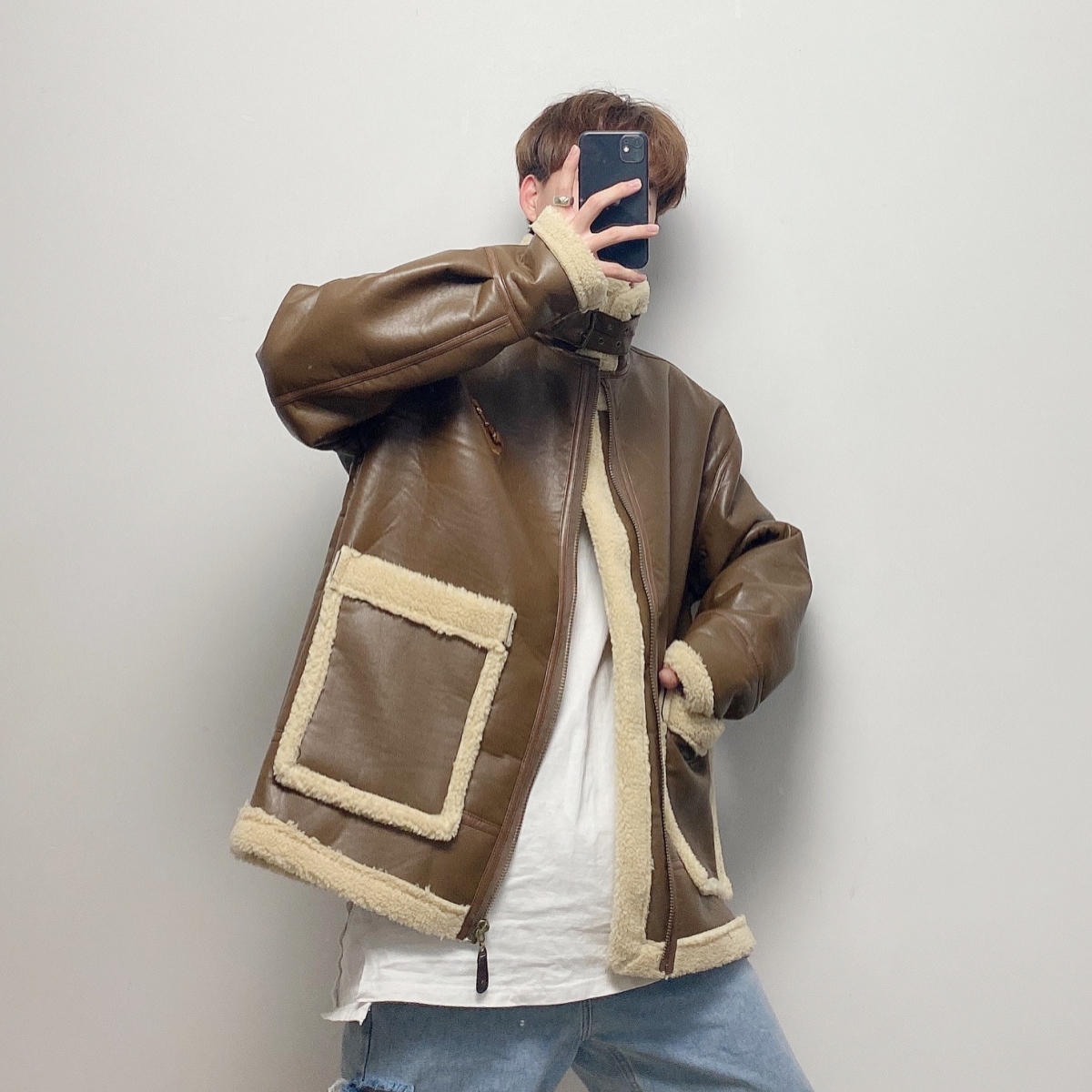 GOMBO BOB URBAN STYLE CASHMERE WOOLEN FAUX LEATHER JACKETS