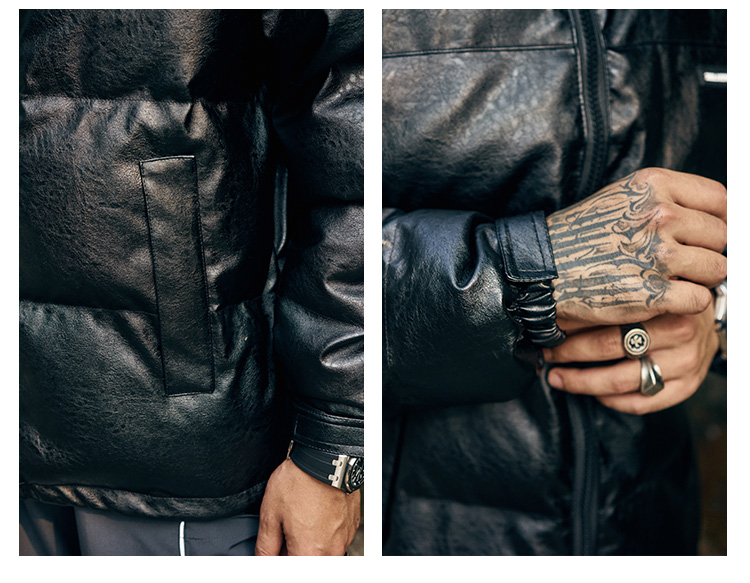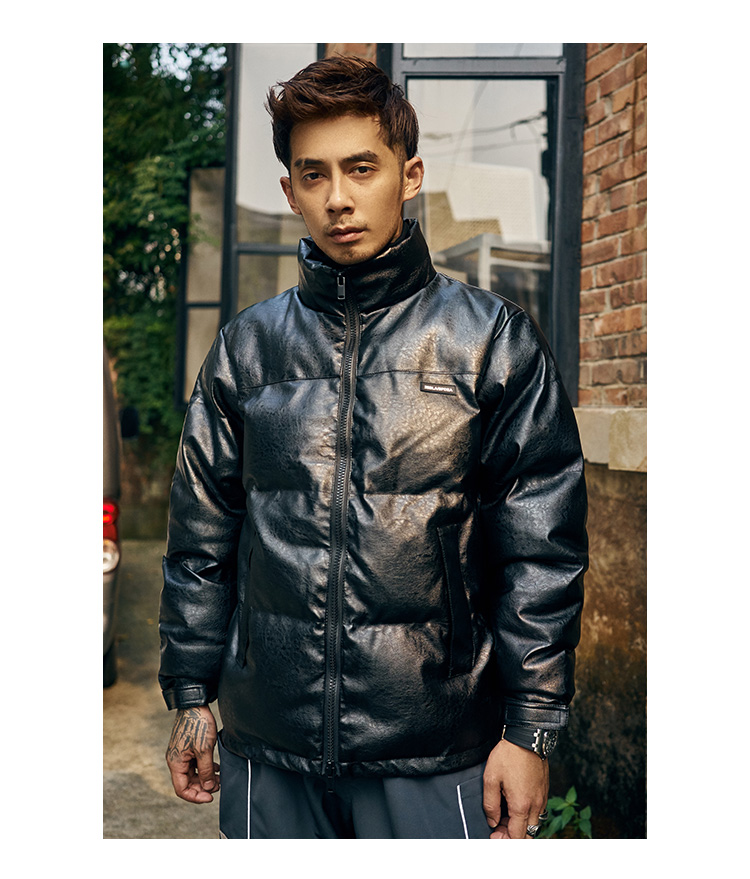 GANJA DUMPOLA FLEECE HIGH NECK WINDPROOF FAUX LEATHER JACKET
