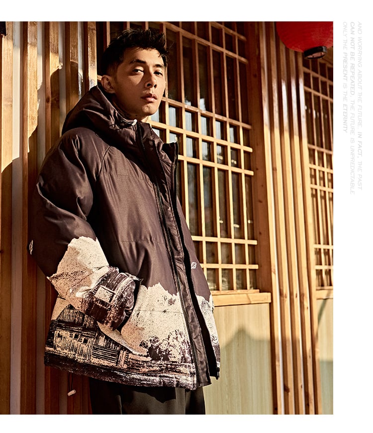 ADAM FONTICO OUTDOOR SNOW MOUNTAIN PRINT CASUAL HOODED JACKET