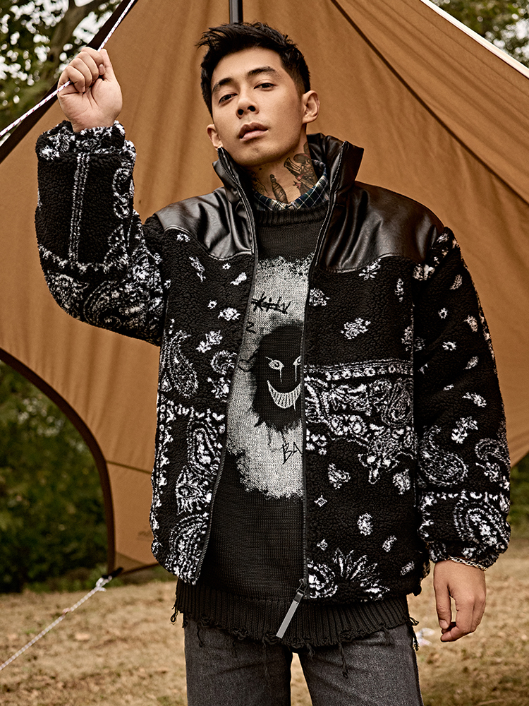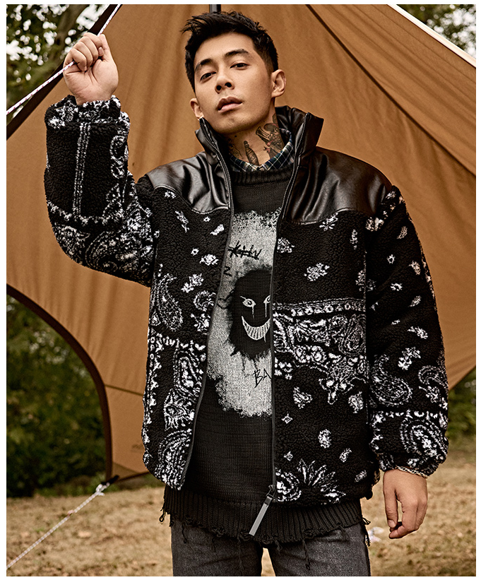 FRETT FOMBIA JAPANESE URBAN STYLE HIGH NECK FAUX LEATHER JACKET