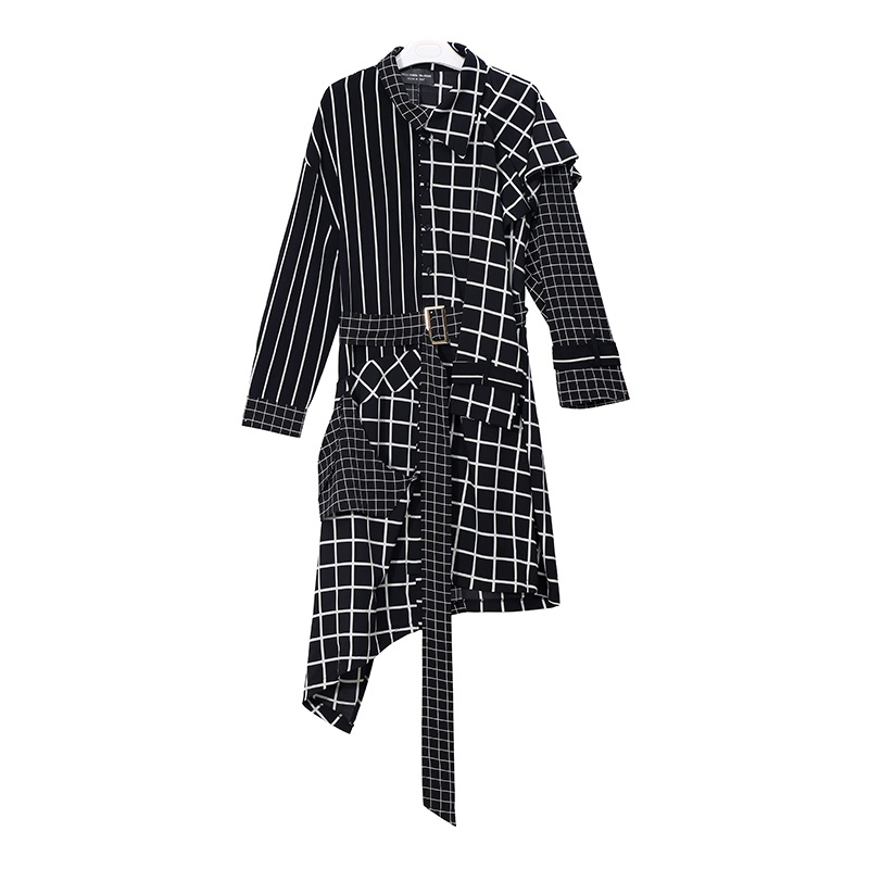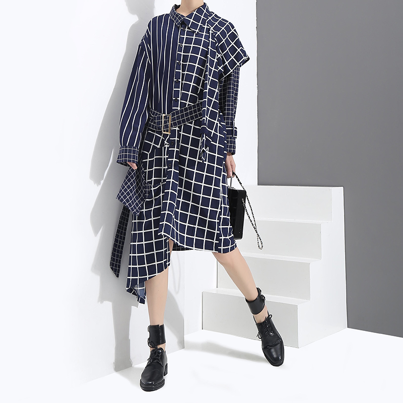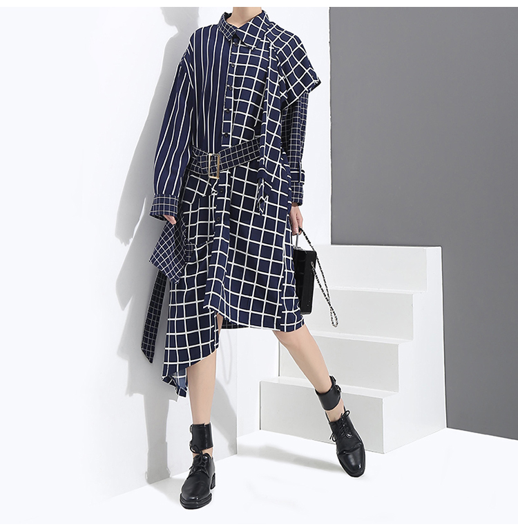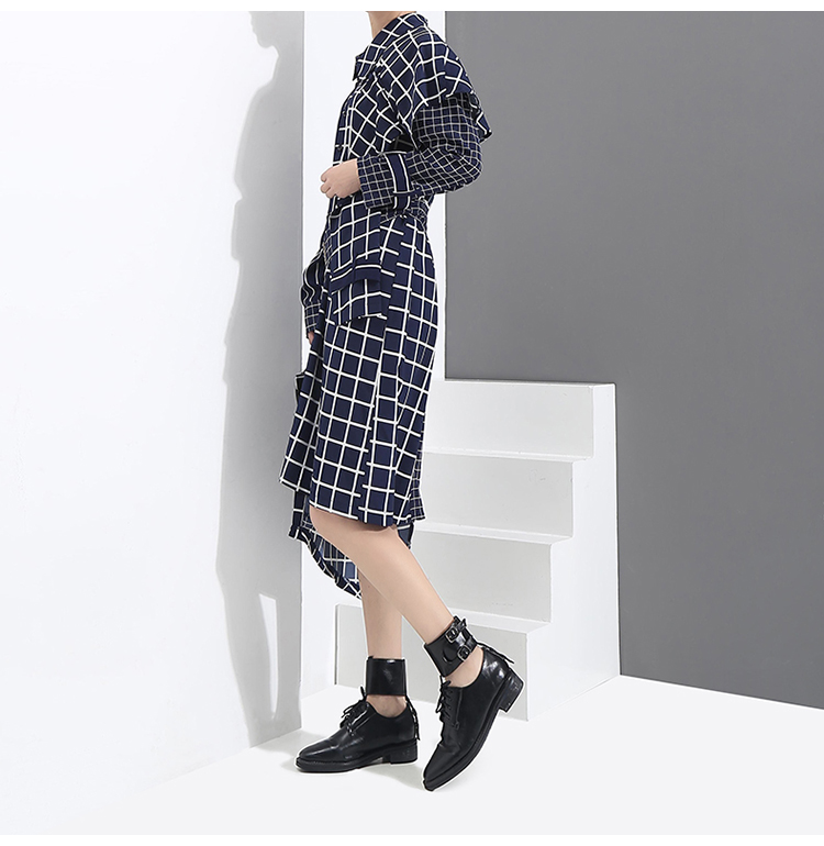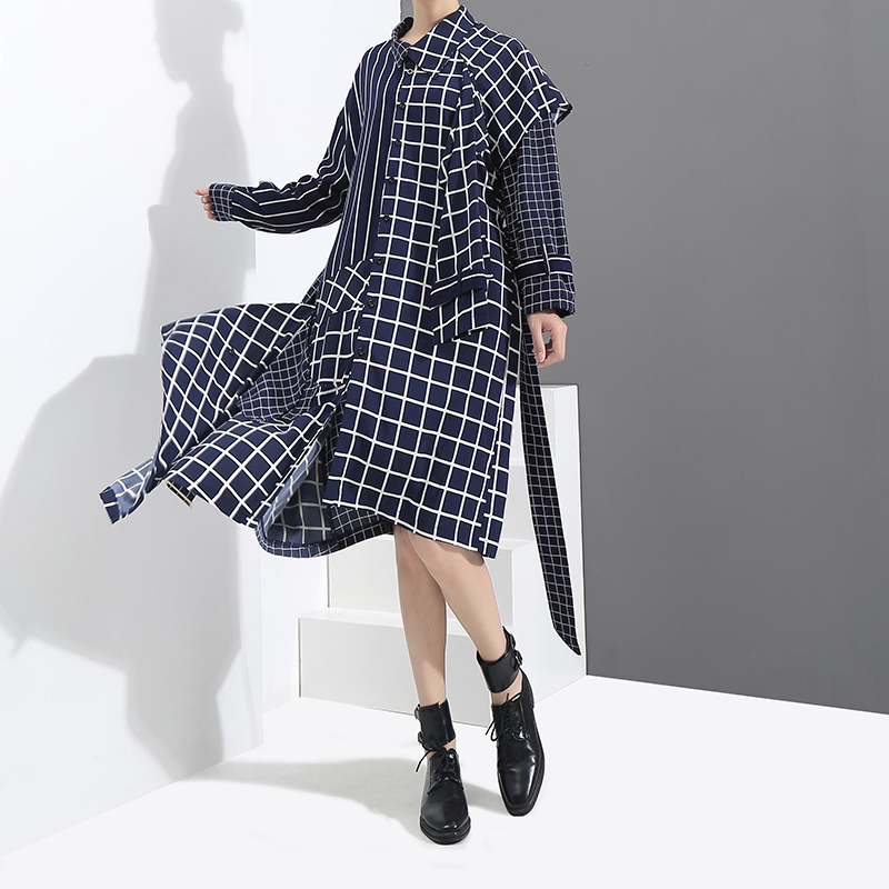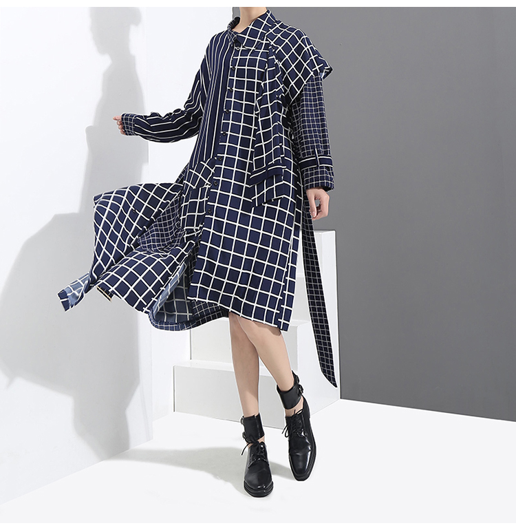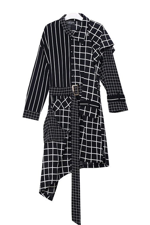 STELLA MARINA COLLEZIONE MID LENGTH PLAID DRESS IN BLACK