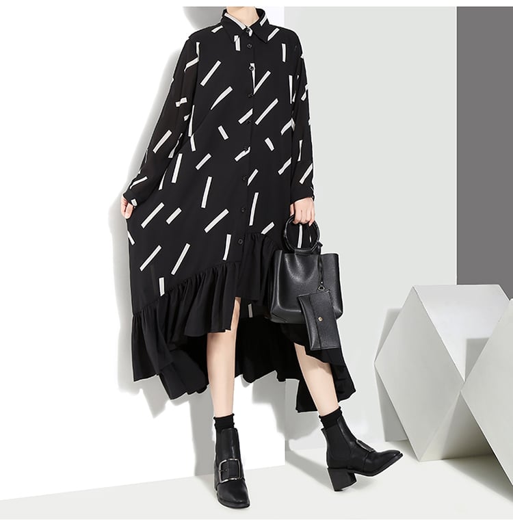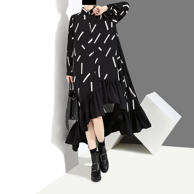 STELLA MARINA COLLEZIONE ASYMMETRIC MID LENGTH SWING DRESS IN BLACK