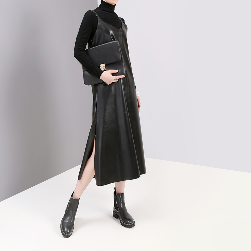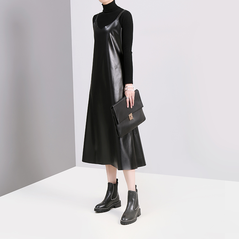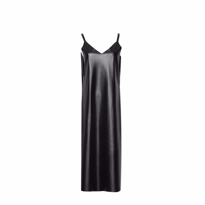 STELLA MARINA COLLEZIONE V NECK FAUX LEATHER CAMISOLE DRESS