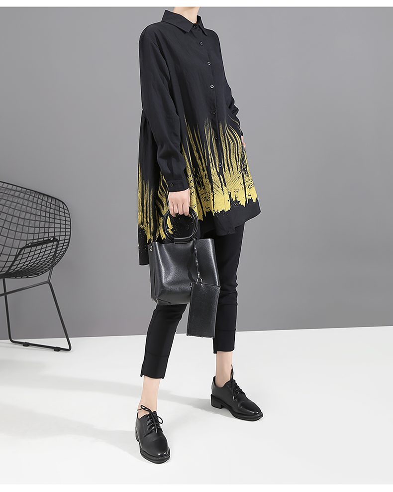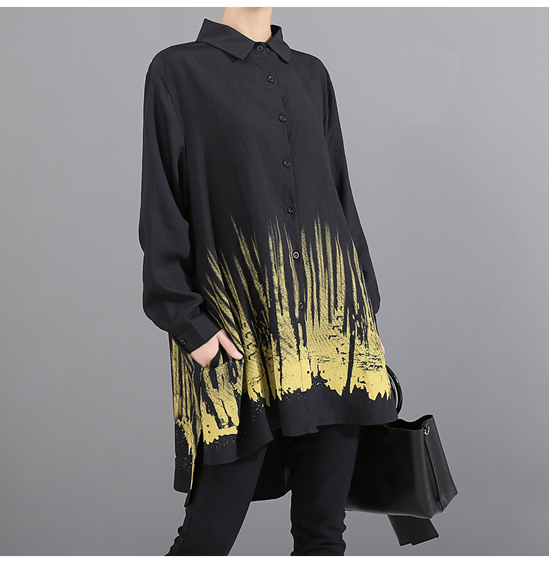 STELLA MARINA COLLEZIONE GEOMETRIC BLOUSE SHIRT DRESS IN BLACK