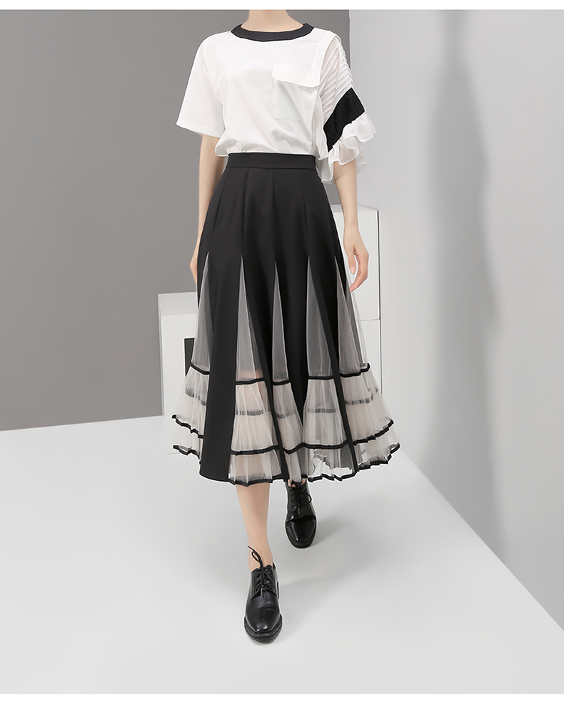 STELLA MARINA COLLEZIONE HIGH WAIST MESH PLEATED SKIRT IN BLACK