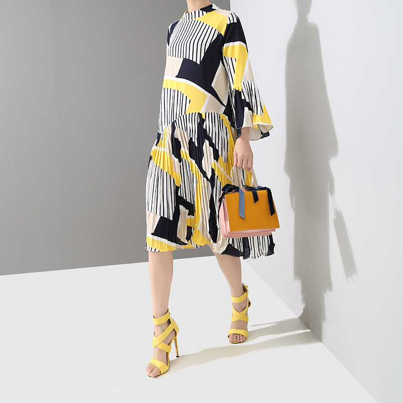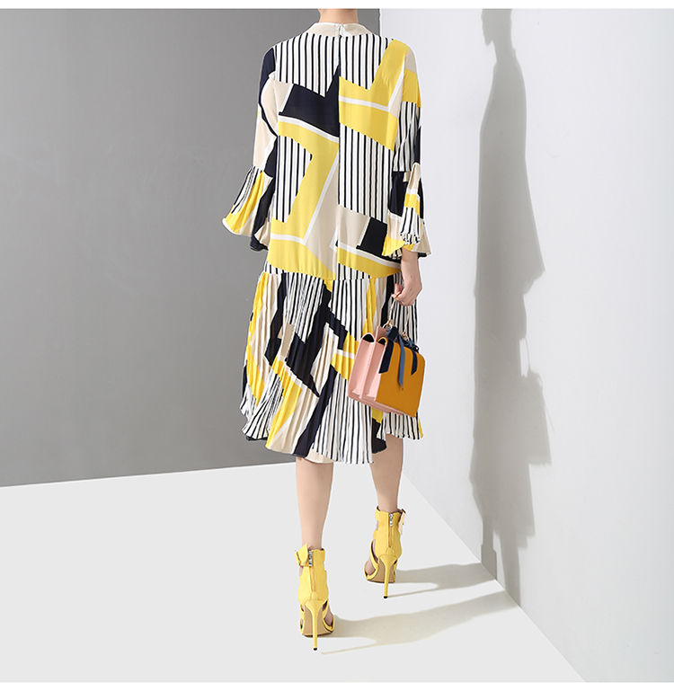 STELLA MARINA COLLEZIONE PLEATED DRESS IN YELLOW