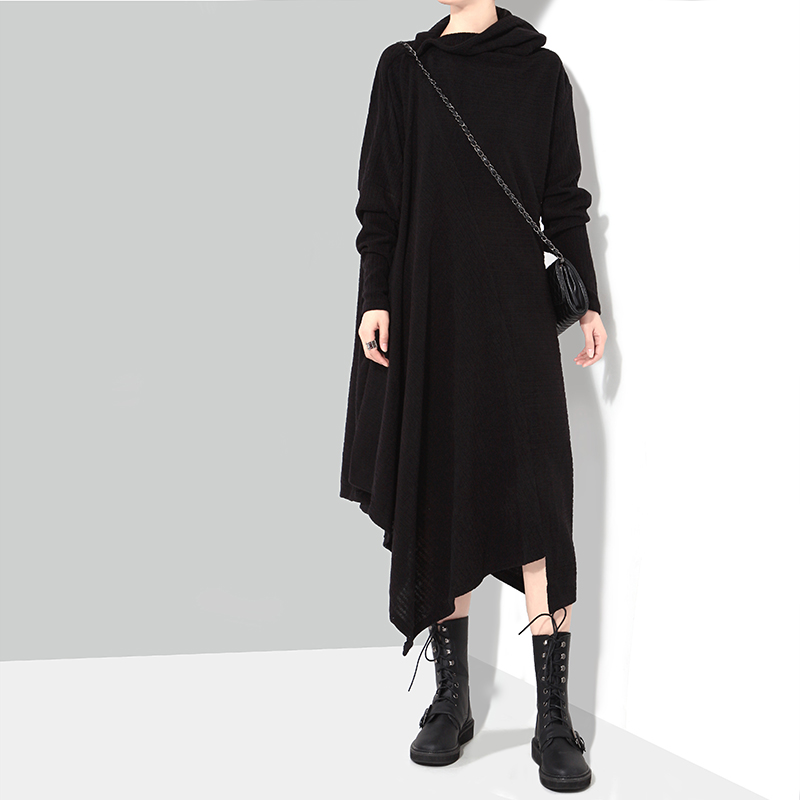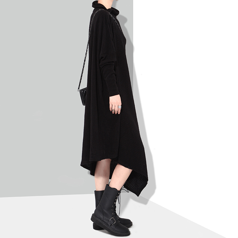 STELLA MARINA COLLEZIONE GOEMETRIC HIGH NECK KNIT DRESS IN BLACK