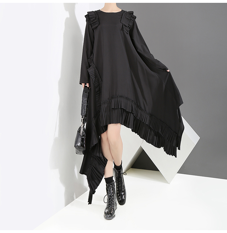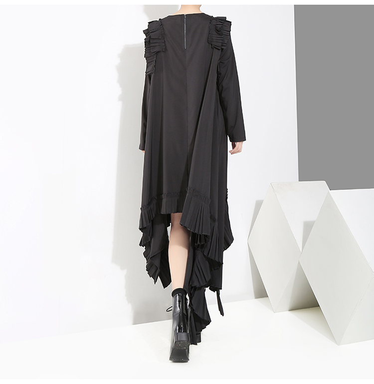 STELLA MARINA COLLEZIONE SUKOL GEOMETRIC PLEATED DRESS IN BLACK