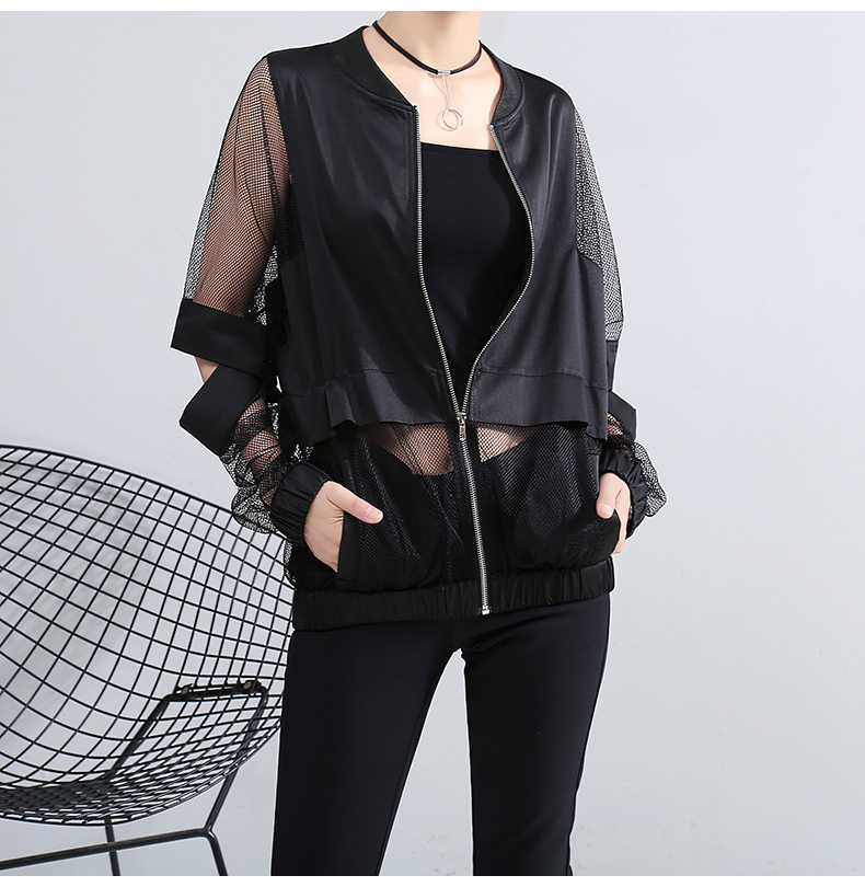 STELLA MARINA COLLEZIONE MESH LOOSE LONG SLEEVED CASUAL COAT IN BLACK