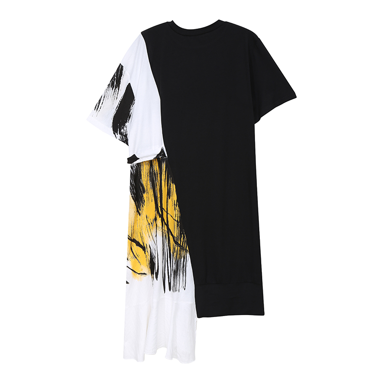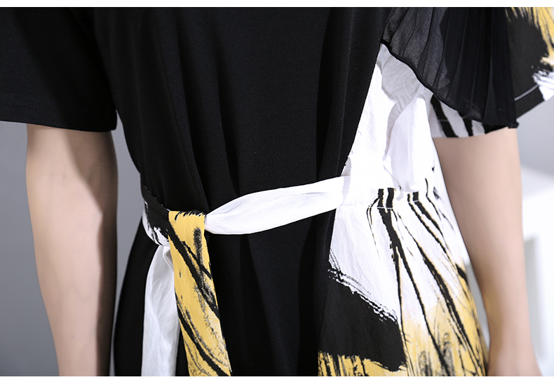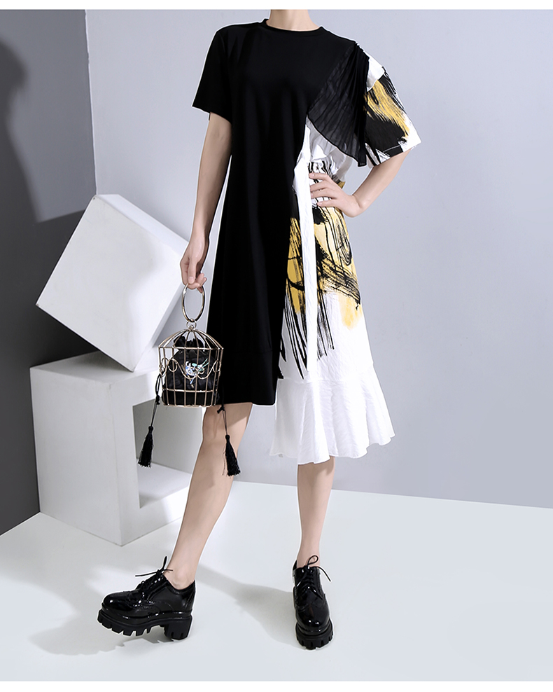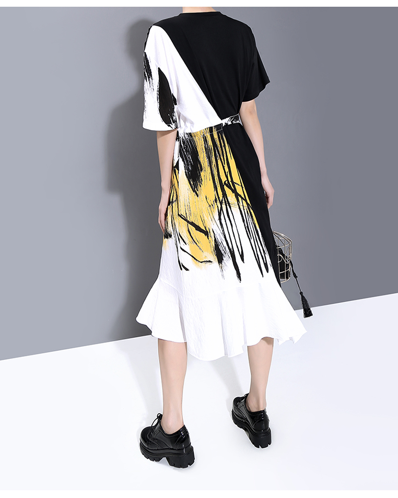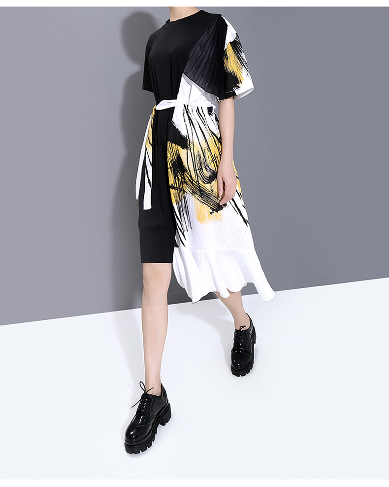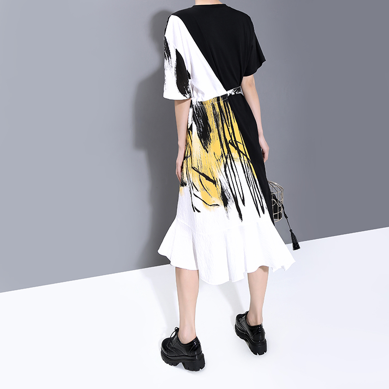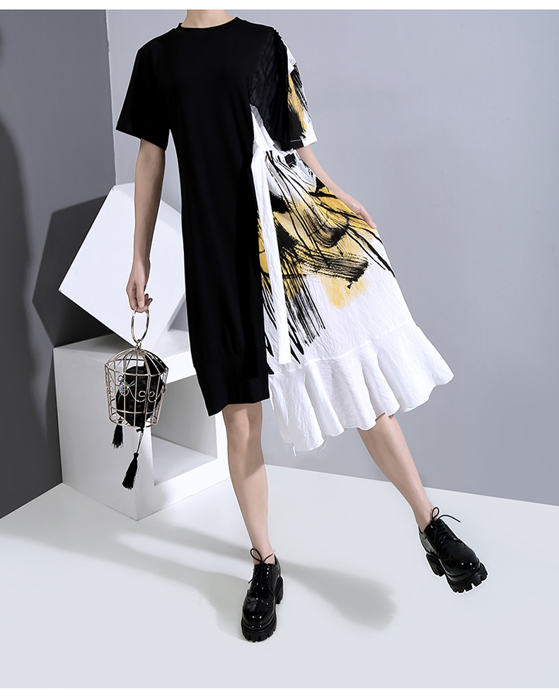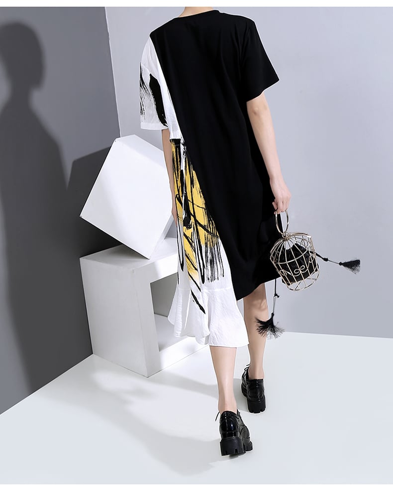 STELLA MARINA COLLEZIONE GEOMETRIC DESIGN RUFFLED T SHIRT DRESS