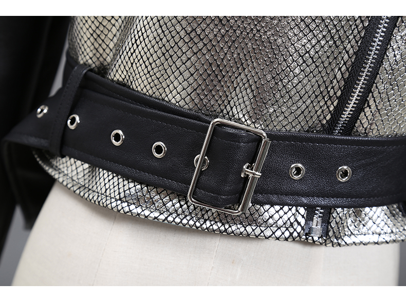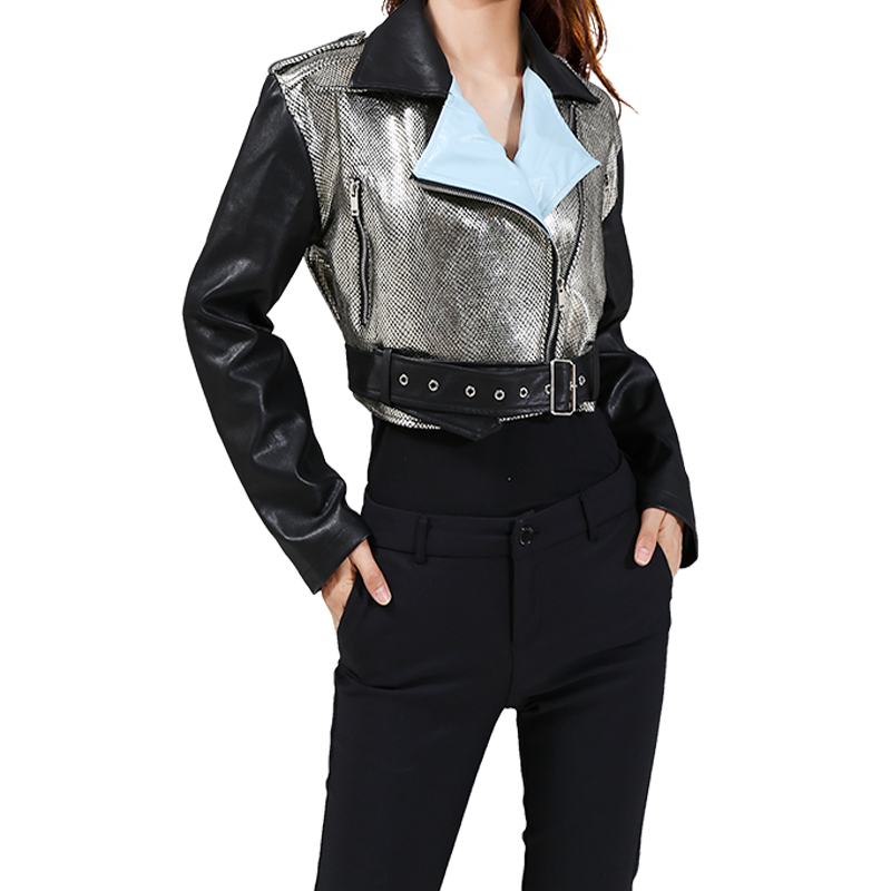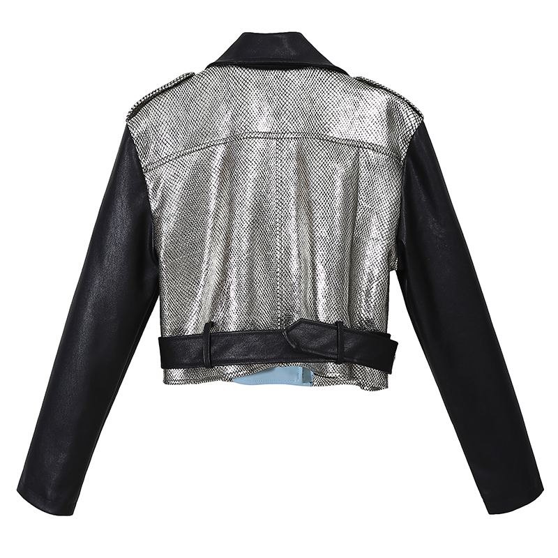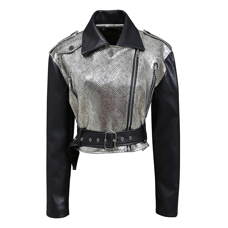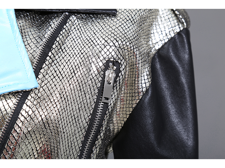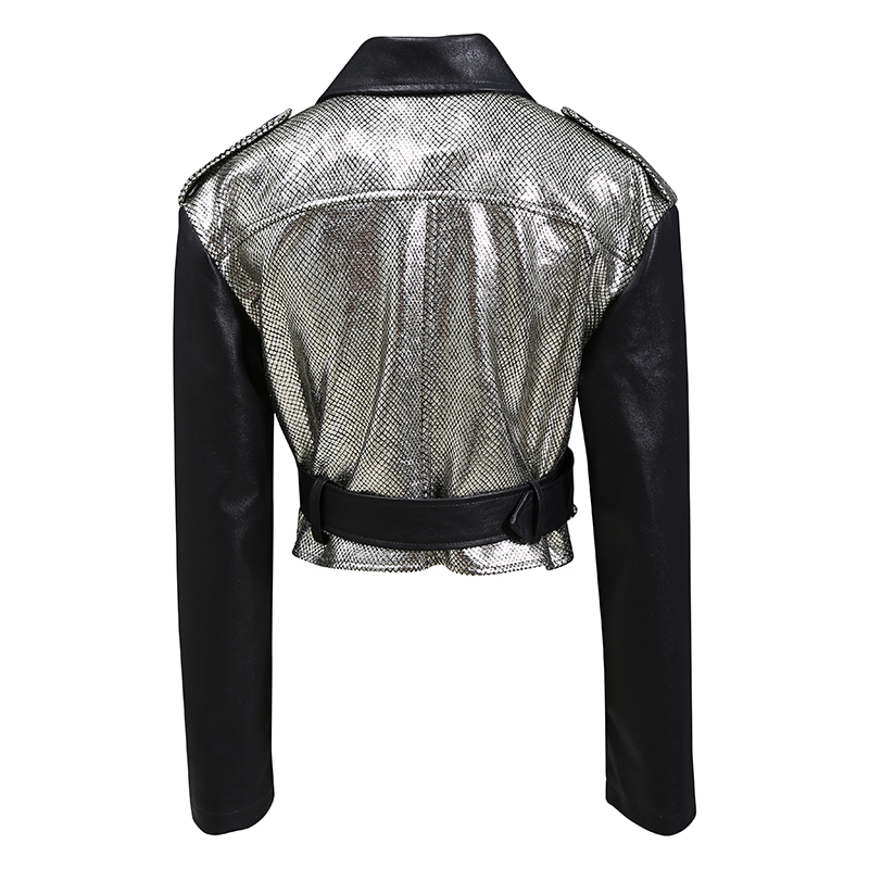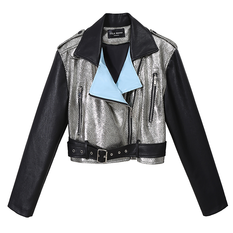 STELLA MARINA COLLEZIONE FAUX LEATHER WINDBREAKER JACKET IN SILVER