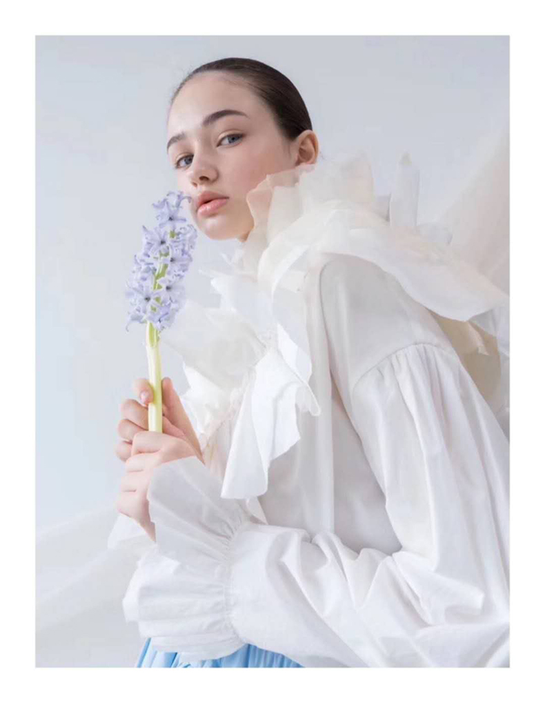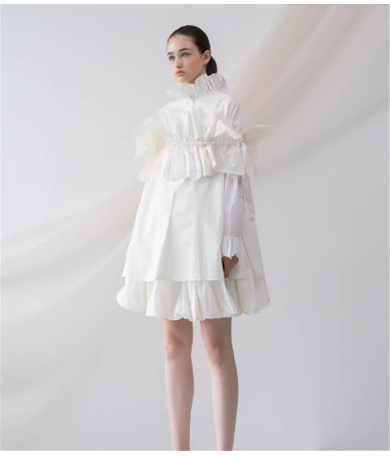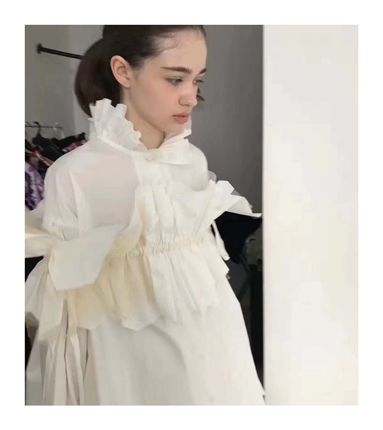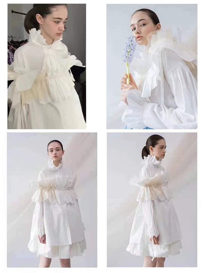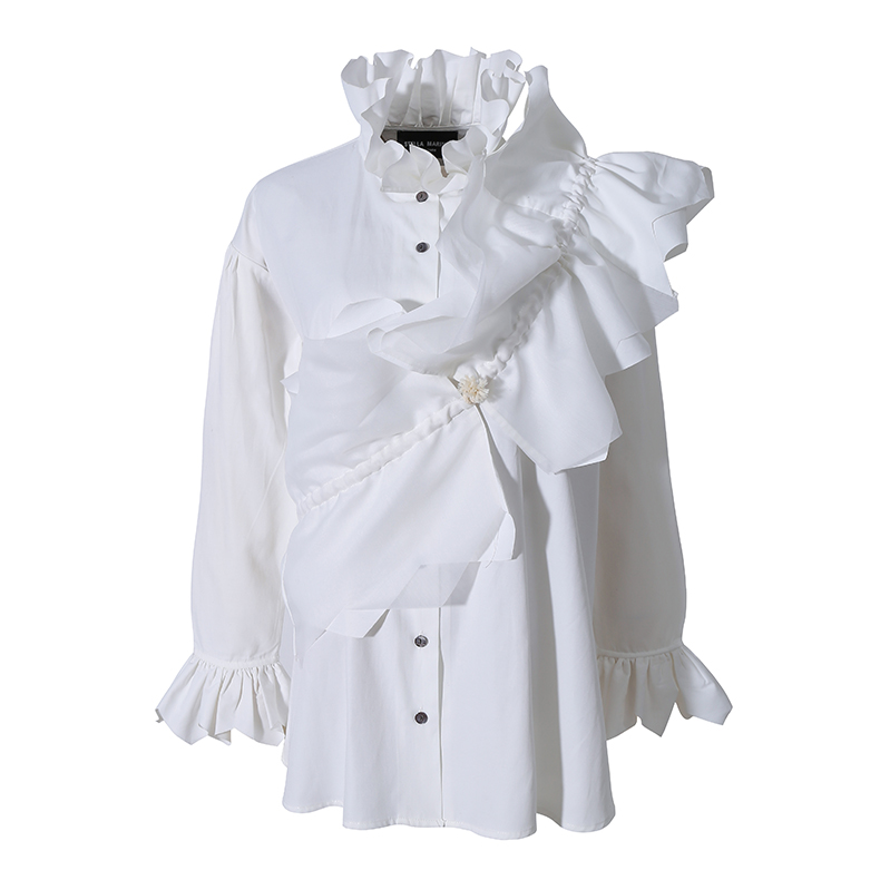 STELLA MARINA COLLEZIONE GEOMETRIC PLEATED LOTUS LEAF COLLAR SHIRT