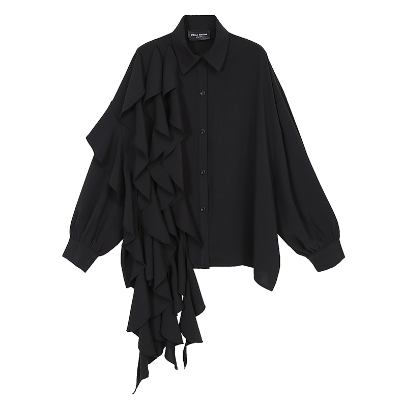 STELLA MARINA COLLEZIONE MESH LOOSE LONG SLEEVED CASUAL COAT IN BLACK