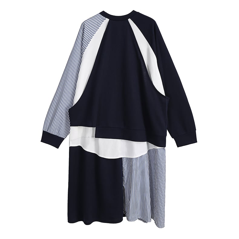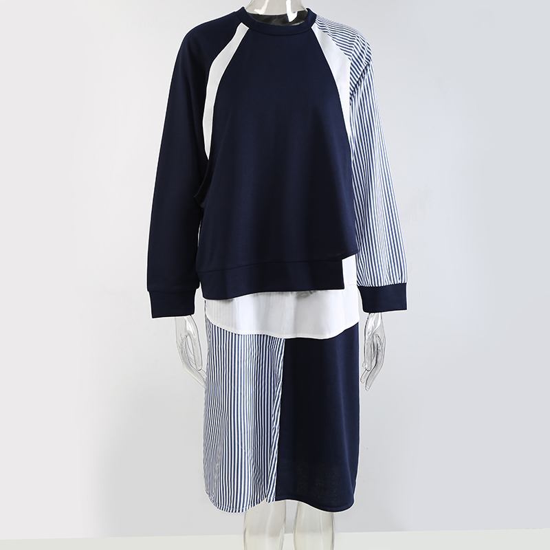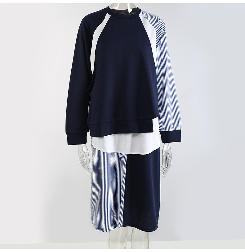 STELLA MARINA COLLEZIONE STRIPED CASUAL SWEATER DRESS IN NAVY