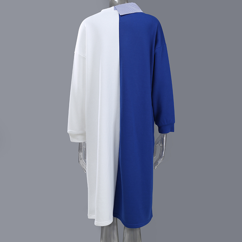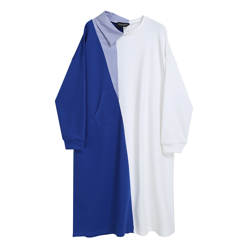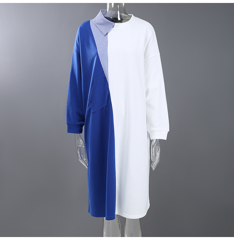 STELLA MARINA COLLEZIONE GEOMETRIC STYLE LONG SWEATER DRESS IN BLUE