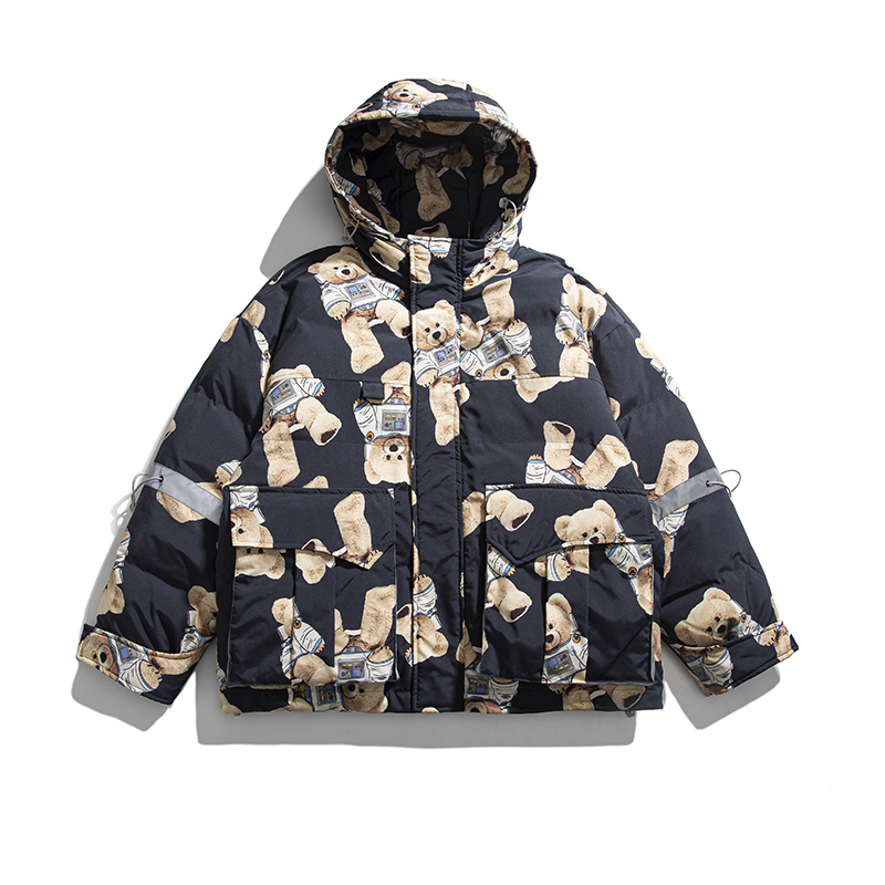 KENTZA CARTOON BEAR PRINT COTTON PADDED UNISEX CASUAL HOODED JACKET