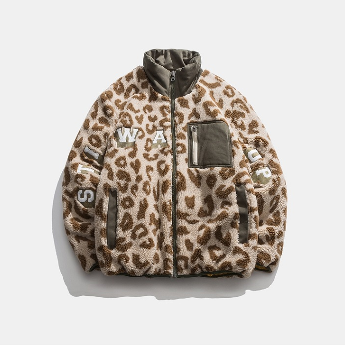 STIWAUP AYWTER WOOLEN HIGH NECK UNISEX JACKET IN LEOPARD