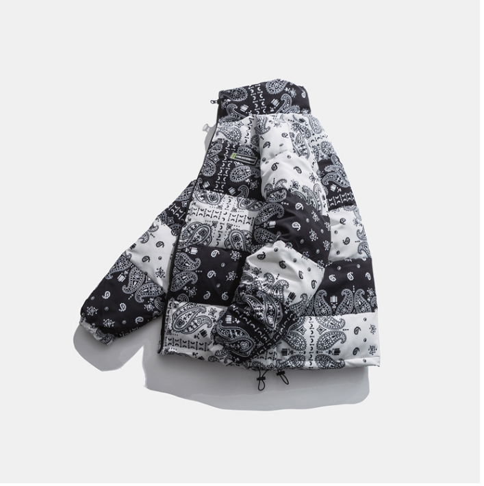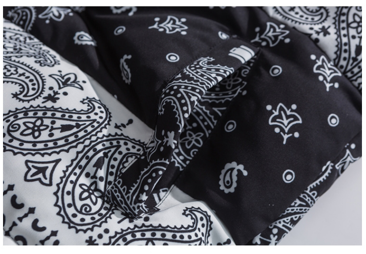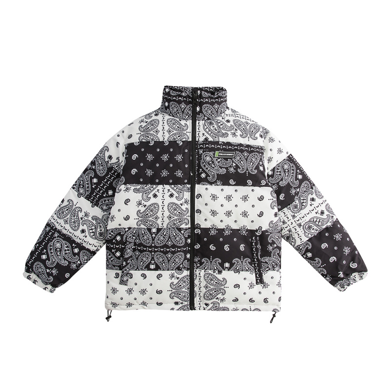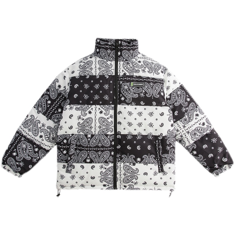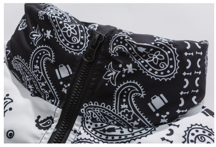 BLACK ENERGY CASHEW FLOWER PRINT HIGH NECK UNISEX CASUAL JACKET
