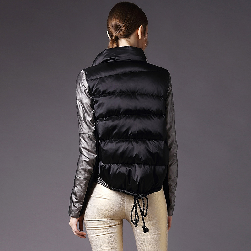 VITI HIGH CLASS PU SILVER LEATHER STITCHED BLACK WINTER COAT 8088