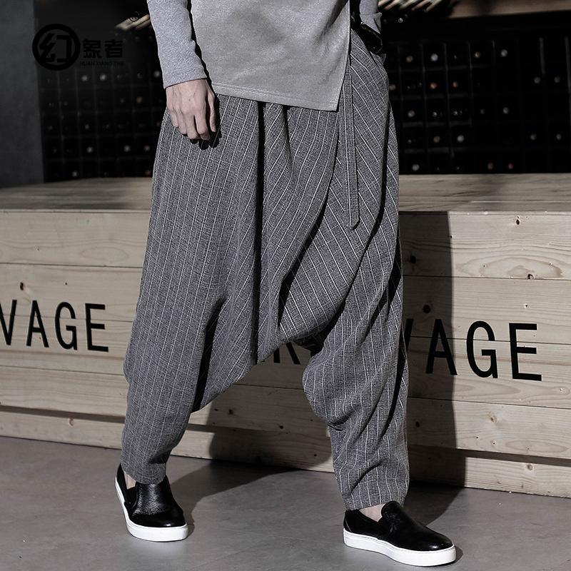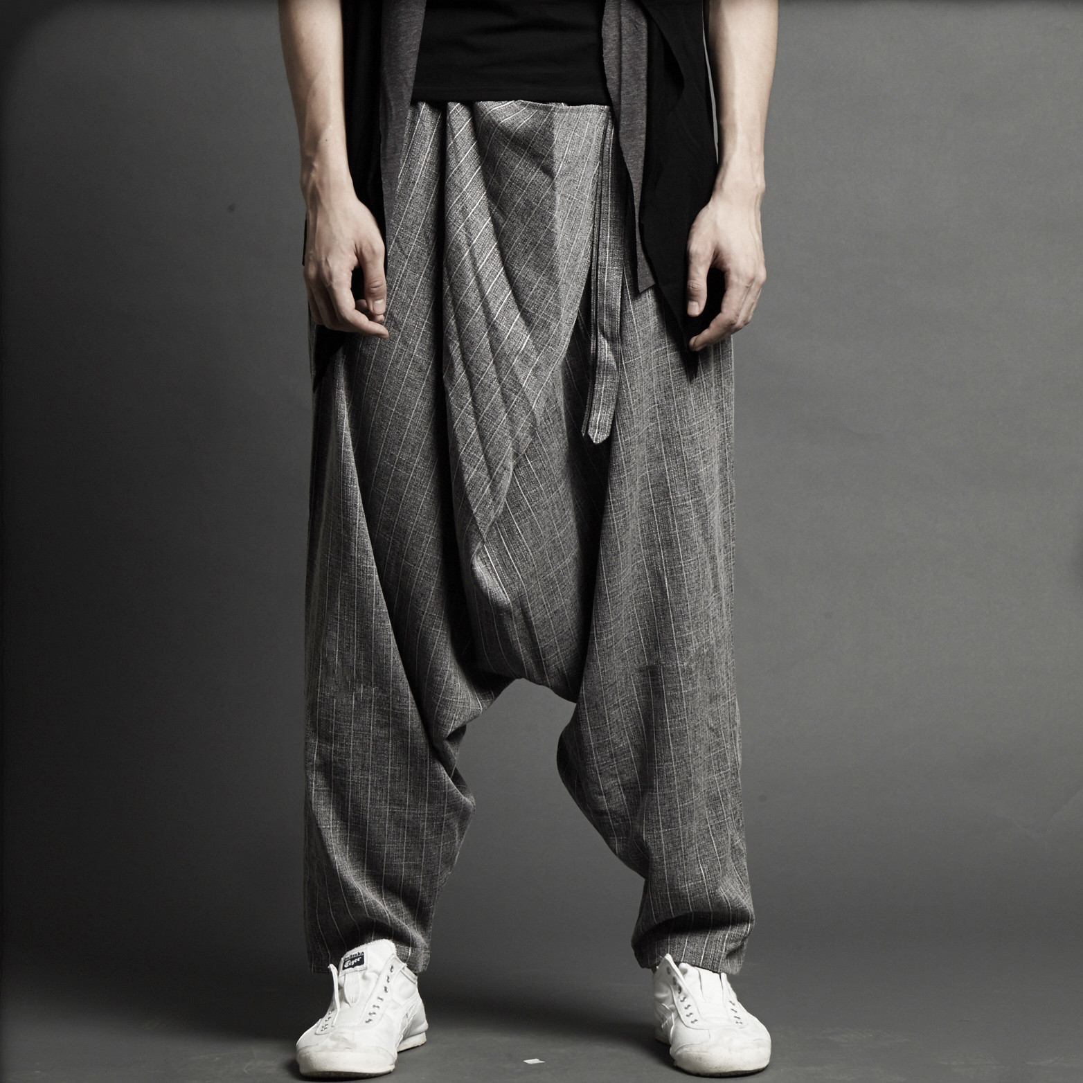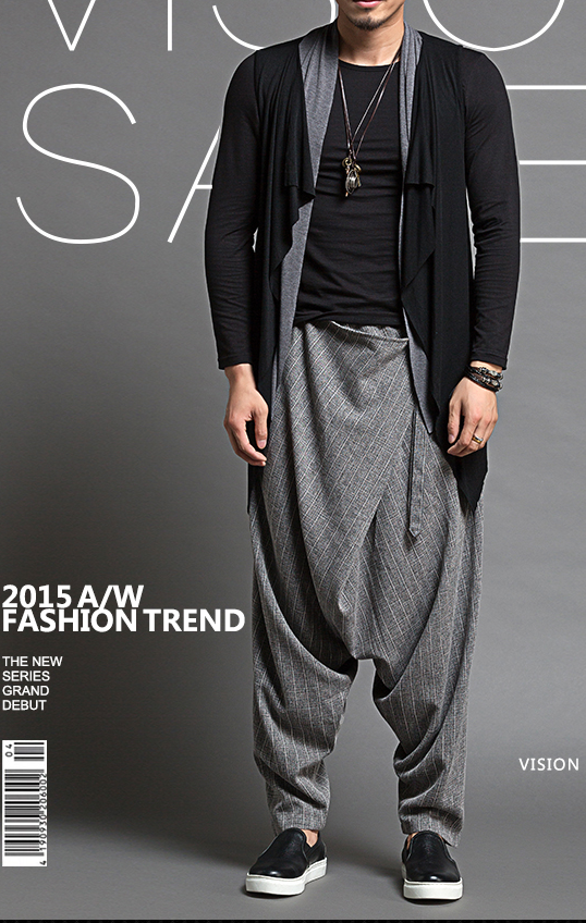 KOREAN DESIGN CROTCH HAREM CASUAL GREY PANTS